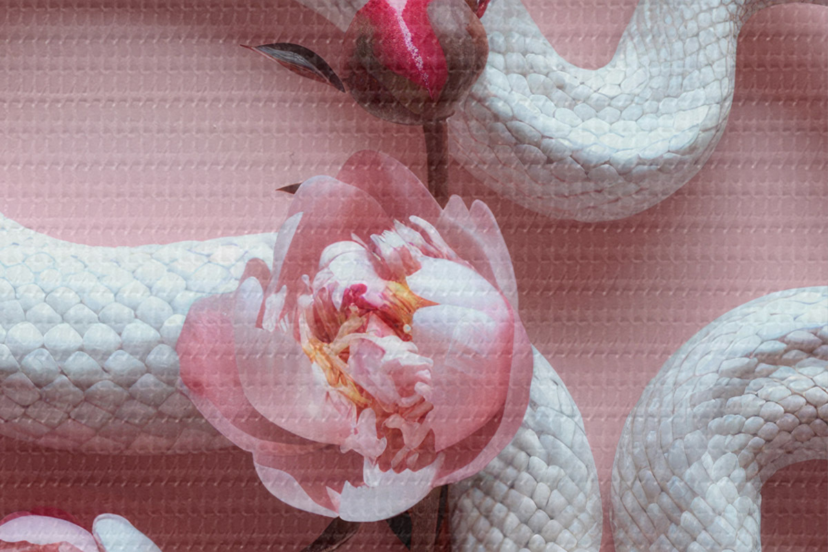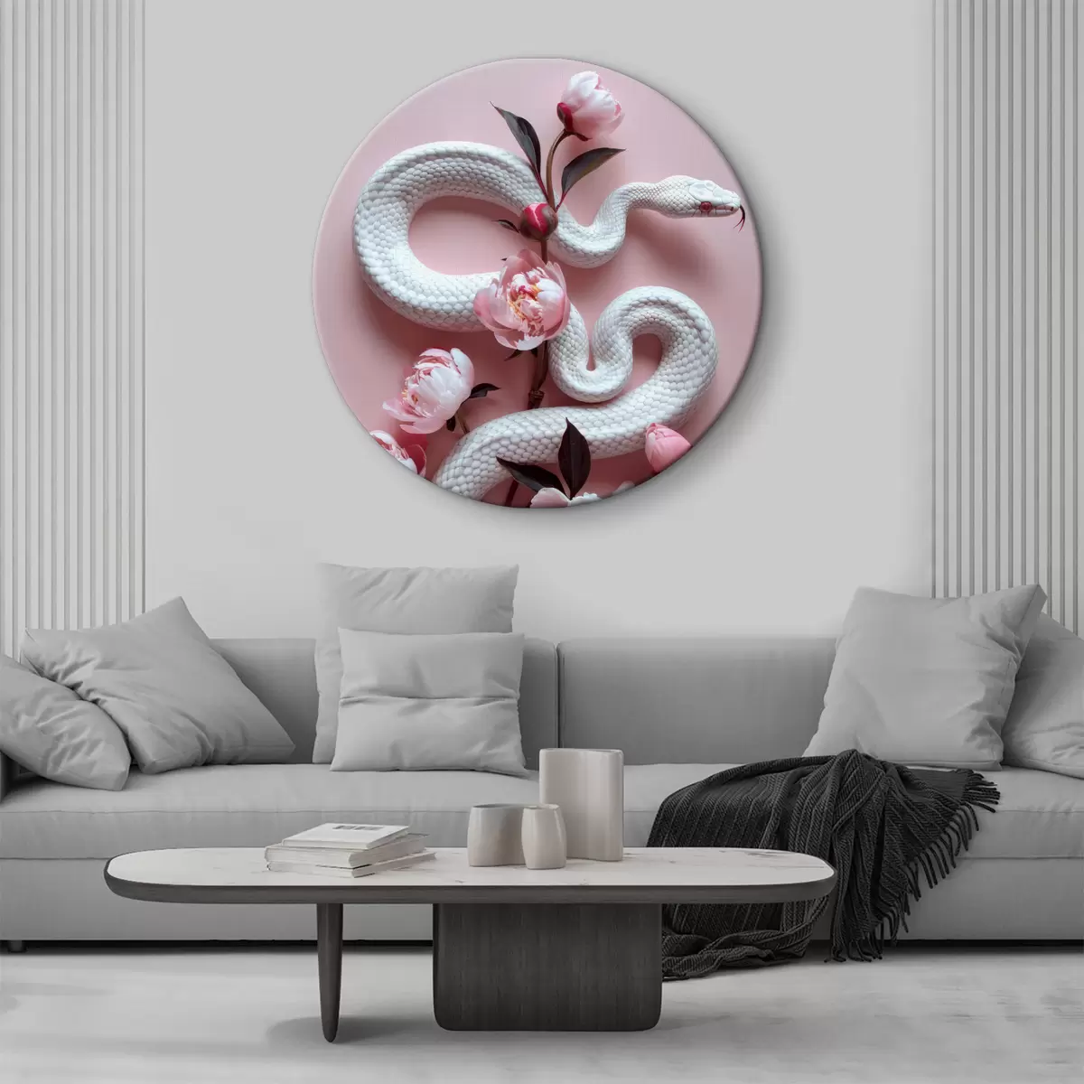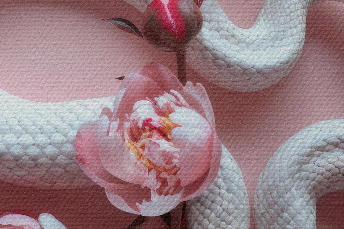 Кругла картина Півонії та біла змія r39942