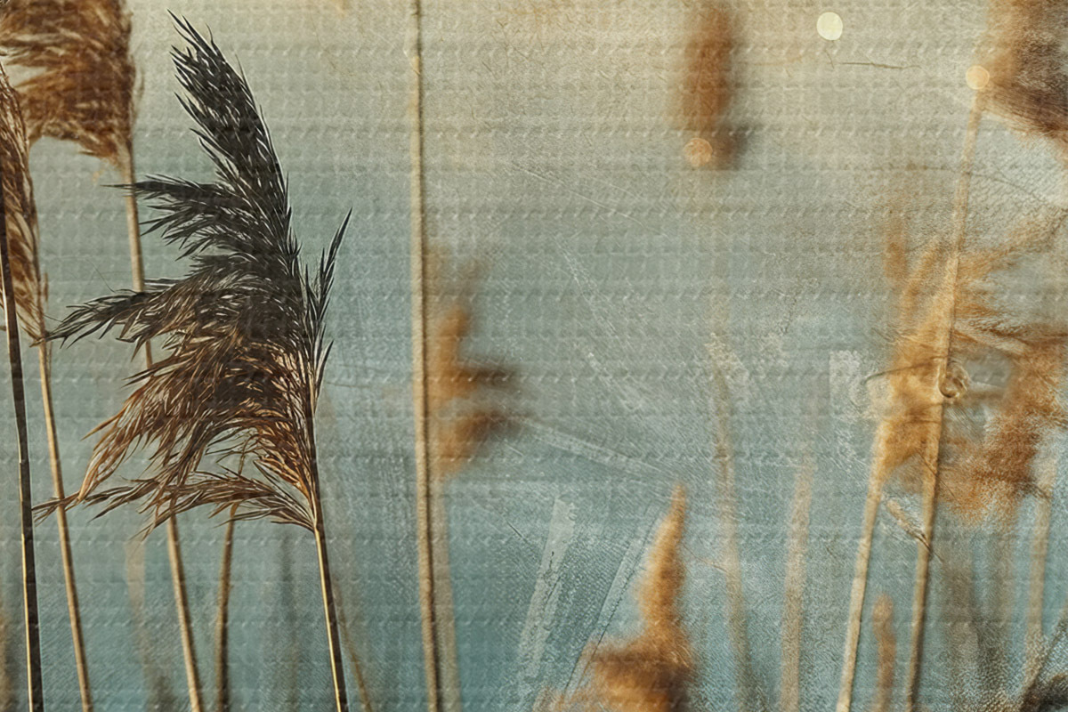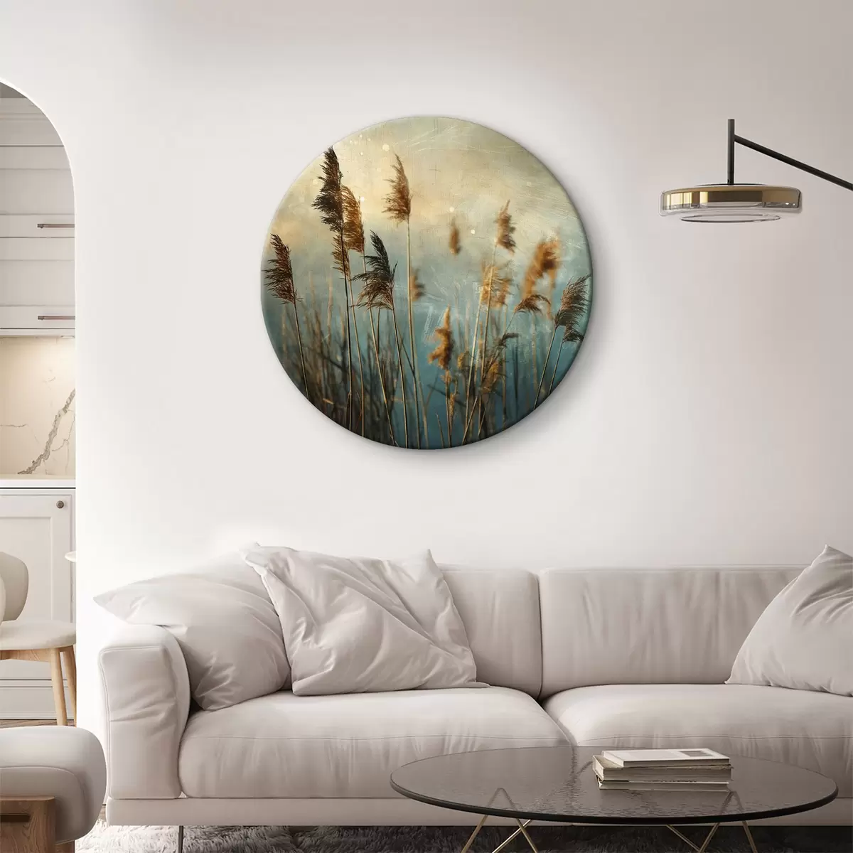 Кругла картина Очерет, синього кольору, антик Nr r39946