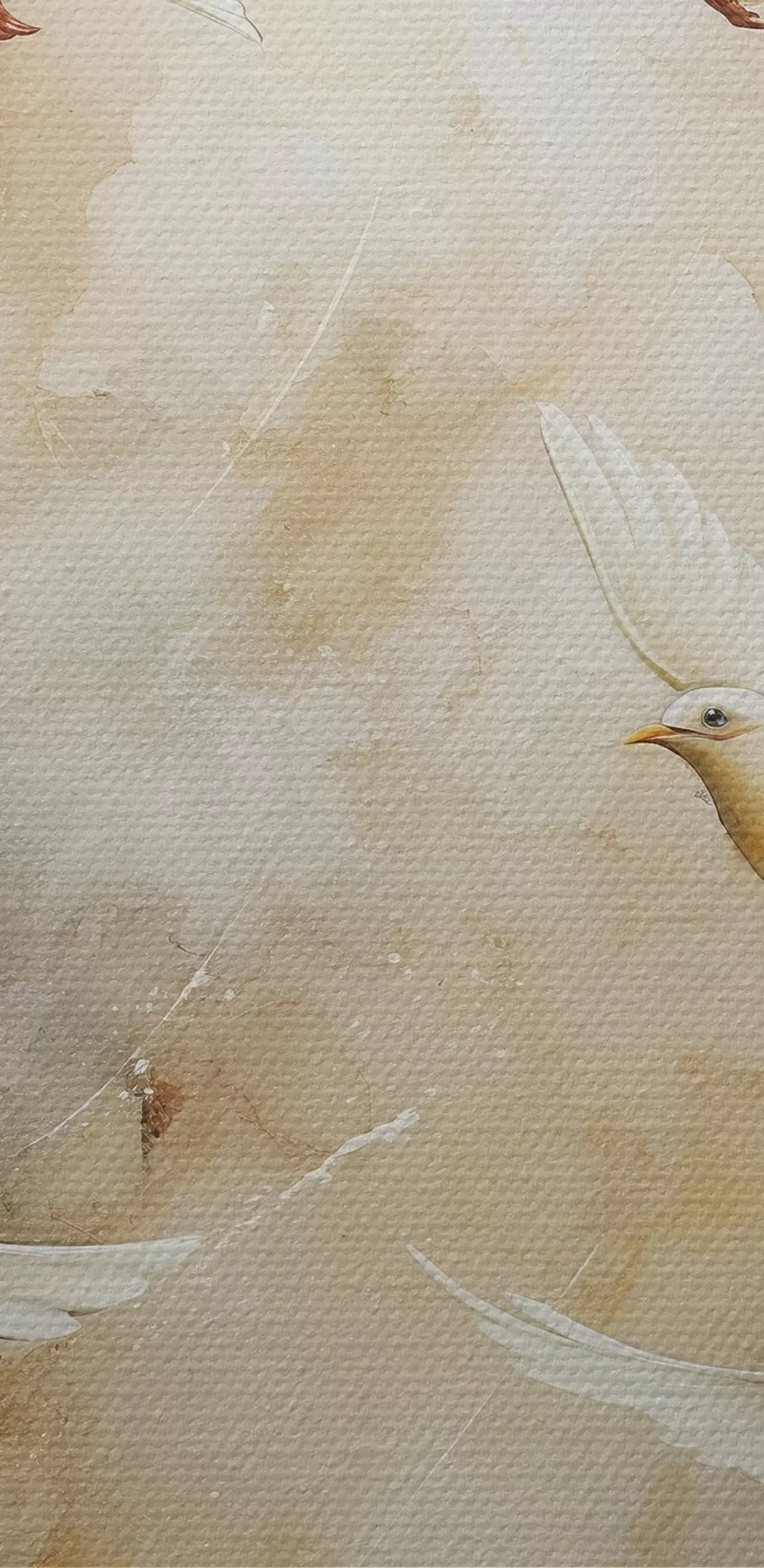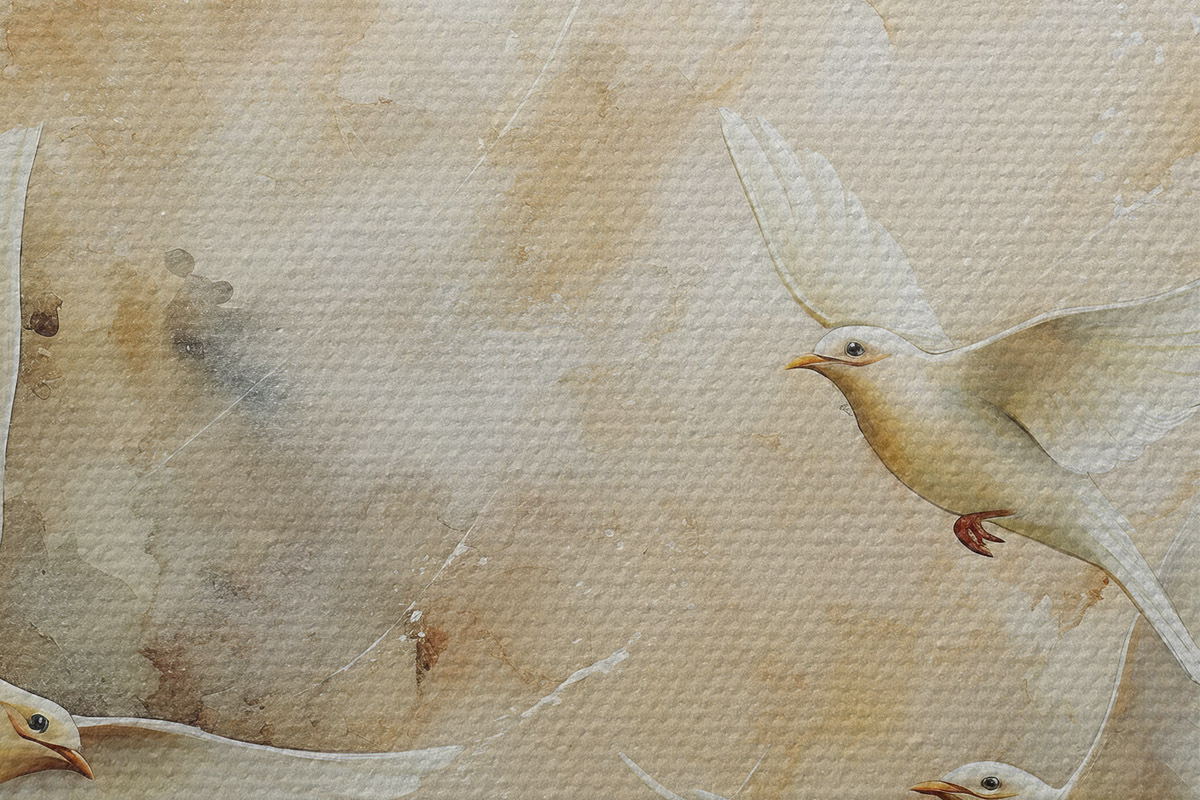 Кругла картина Акварель літаючих голубів, м'який бежевий і білий кольори r39977
