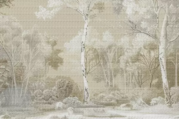 Кругла картина Гарний лісовий краєвид, ставок і дерева, бежевий і білий кольори Nr r39979