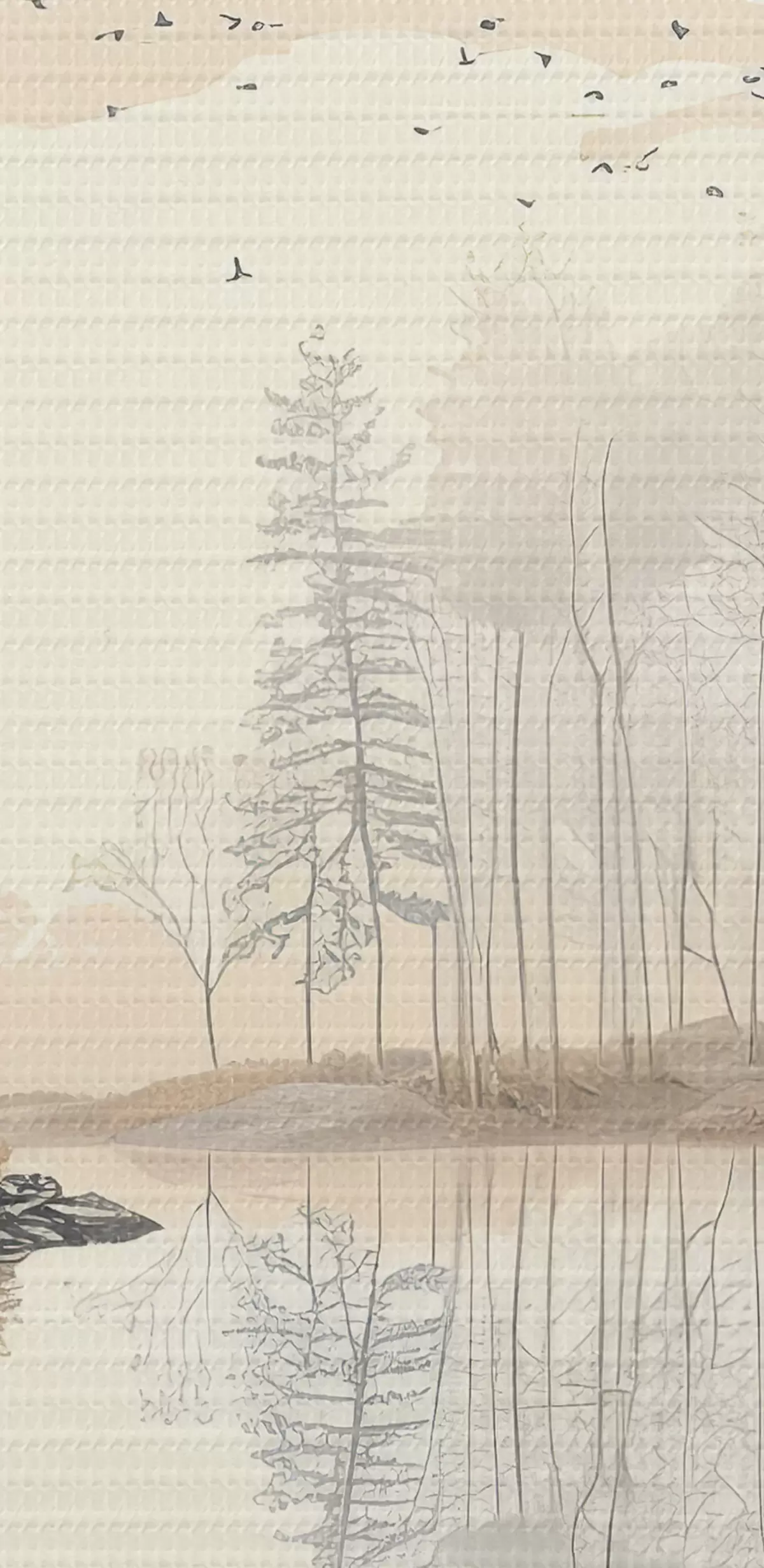 Кругла картина Гарний природний краєвид, ставок і дерева, дика природа, м'які пастельні кольори Nr r39980