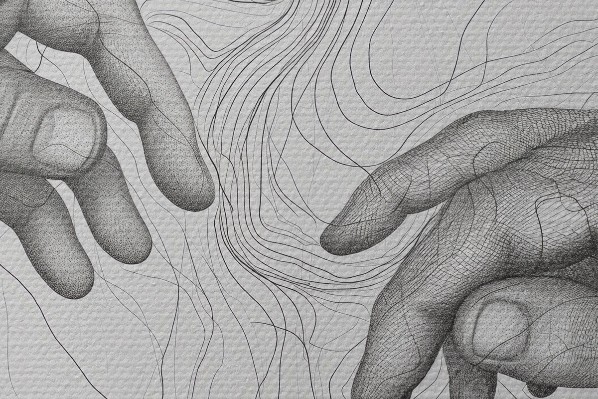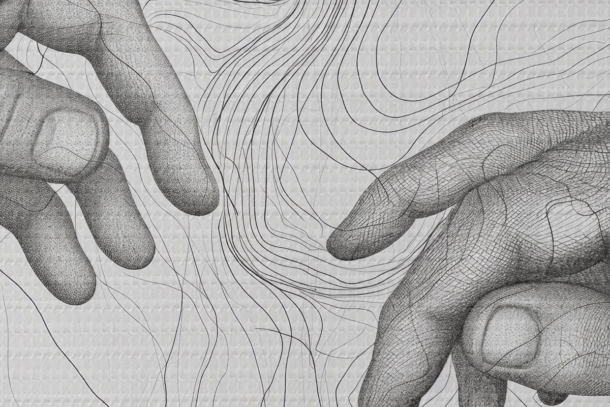 Кругла картина Руки, абстракція, штриховий малюнок r39999