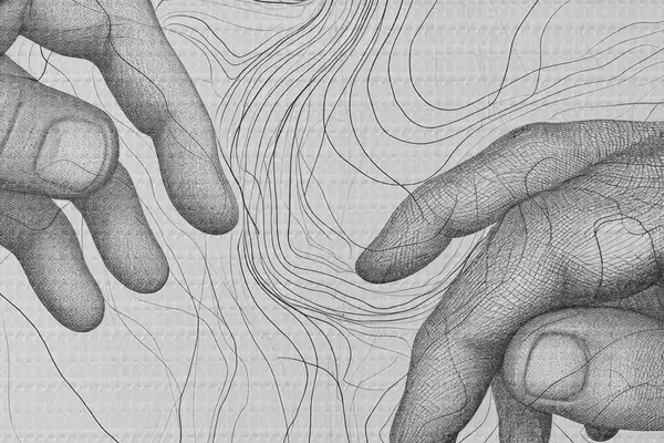 Кругла картина Руки, абстракція, штриховий малюнок Nr r39999