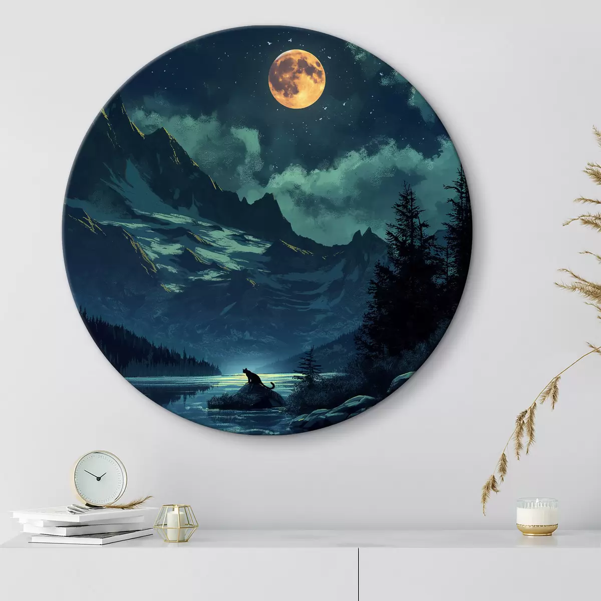 Кругла картина Гори, вечір, місяць, повний місяць Nr r40002