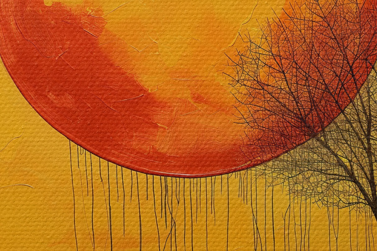 Кругла картина Дерво, захід, червоний, жовтий r40006