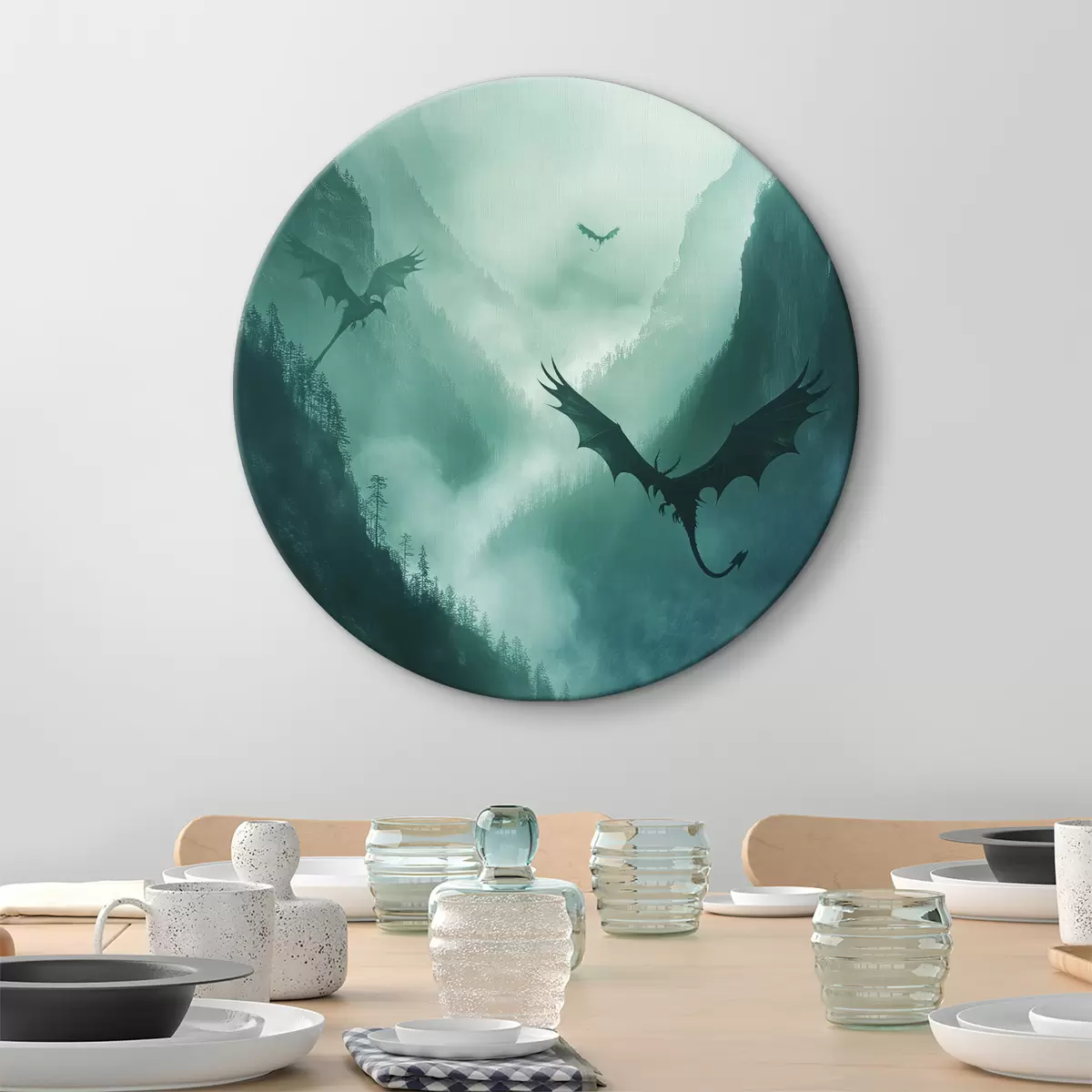 Кругла картина Два дракони, зелені r40011