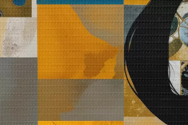 Кругла картина Абстрактна геометрична композиція з жінками та різними формами, текстурами та кольорами Nr r40016