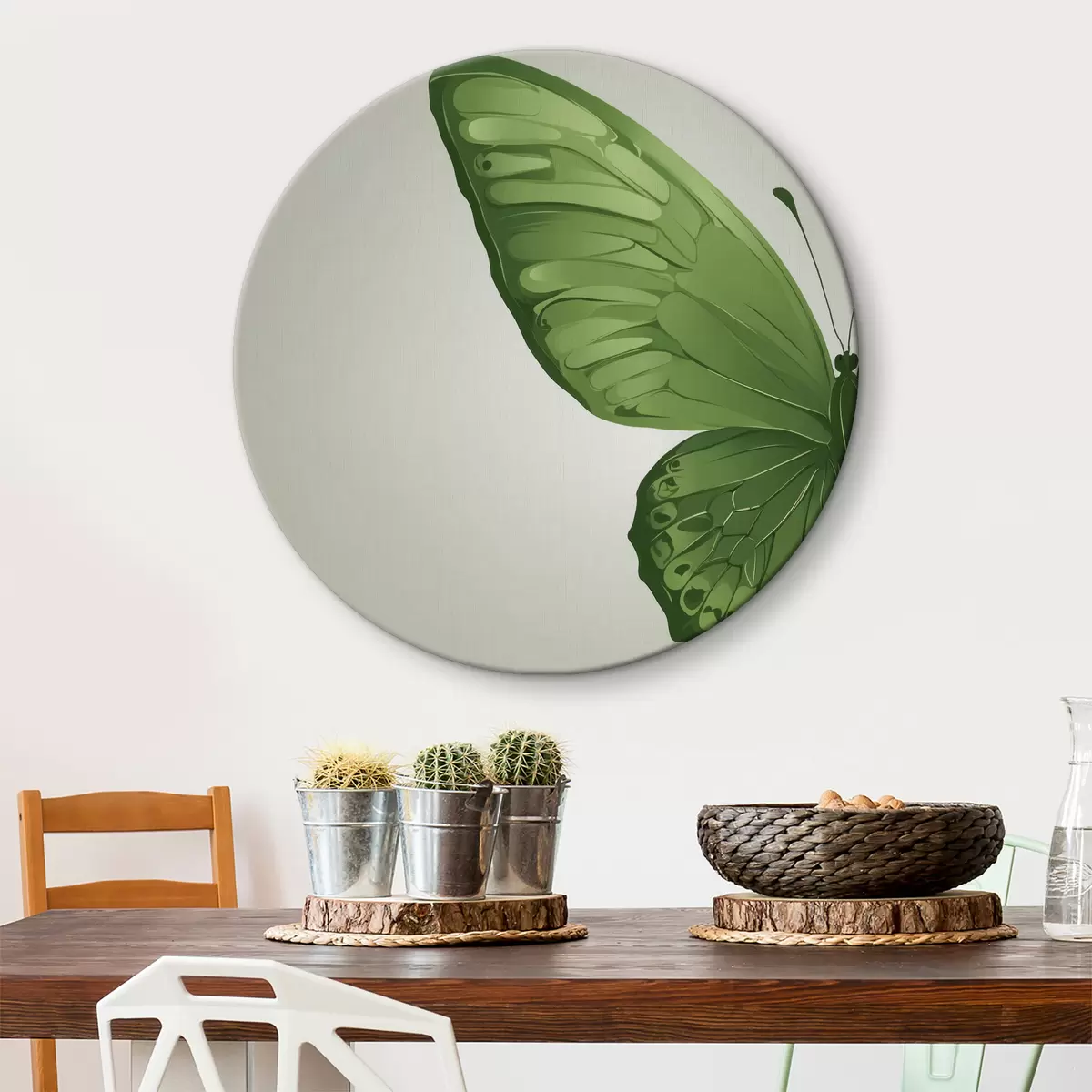 Кругла картина Ліве крило зеленого метелика на білому тлі Nr r40062