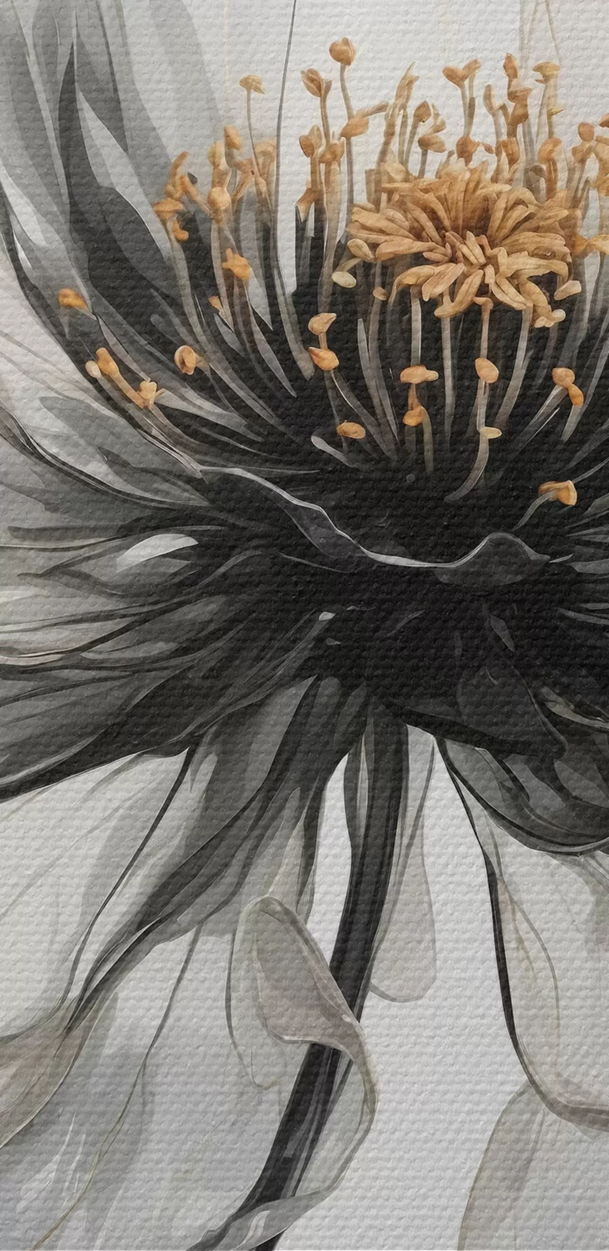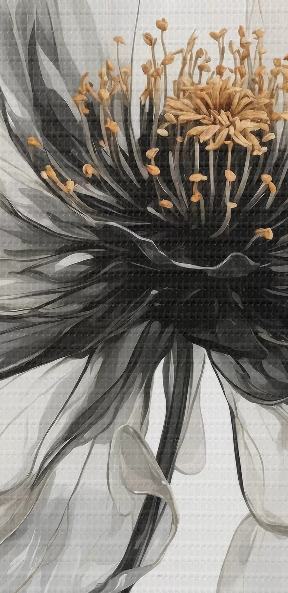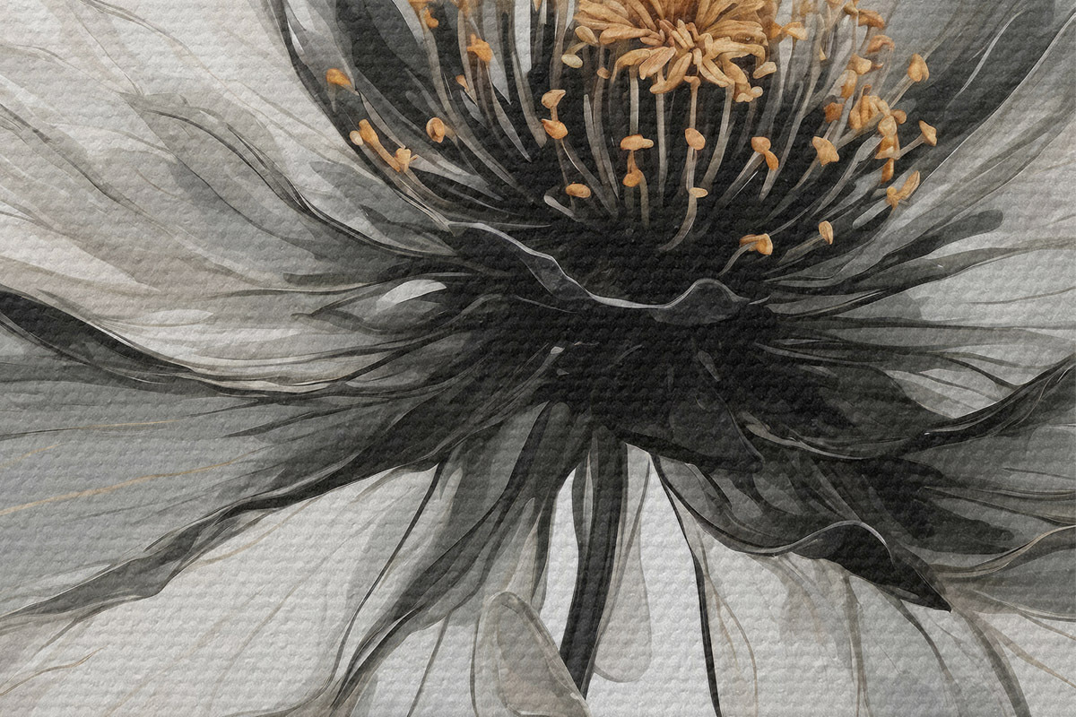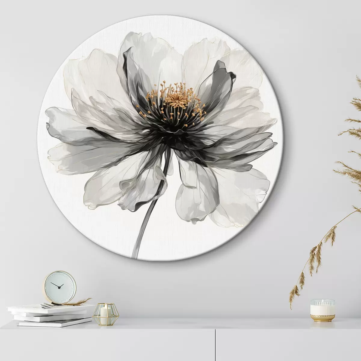 Кругла картина Прозора чорна квітка на білому тлі Nr r40066