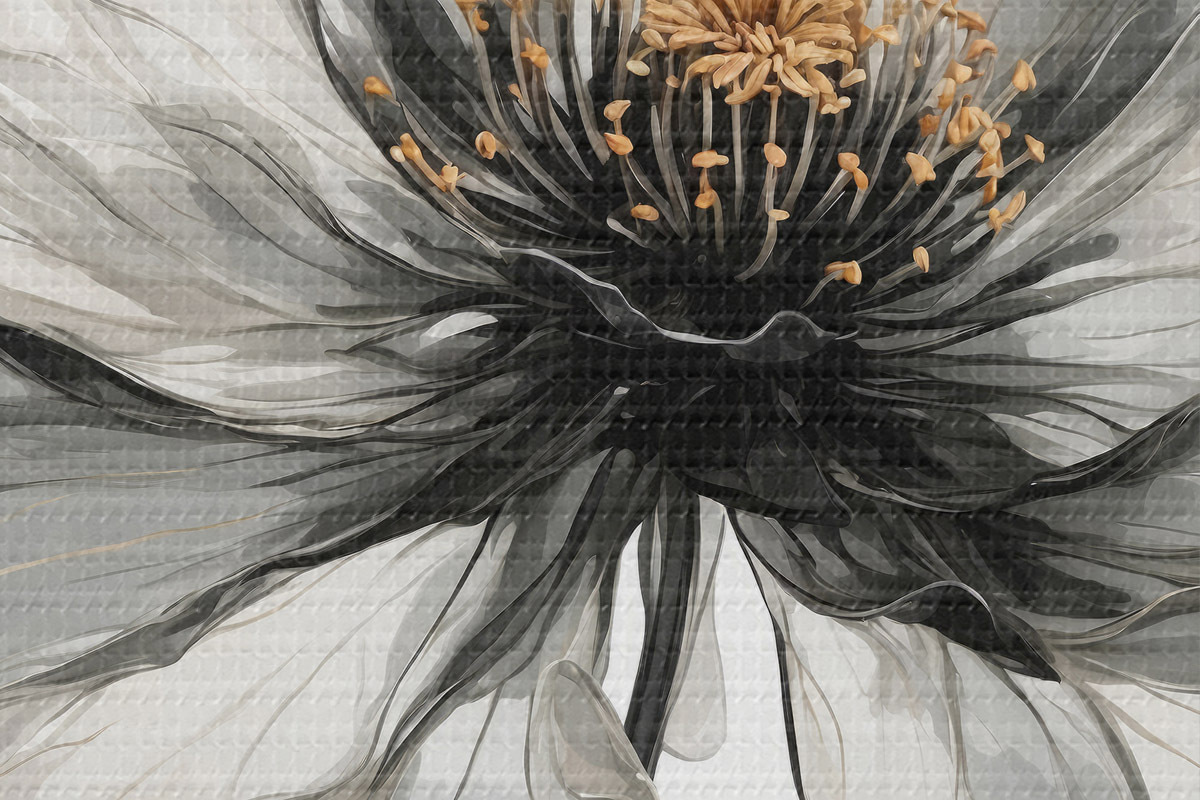 Кругла картина Прозора чорна квітка на білому тлі r40066