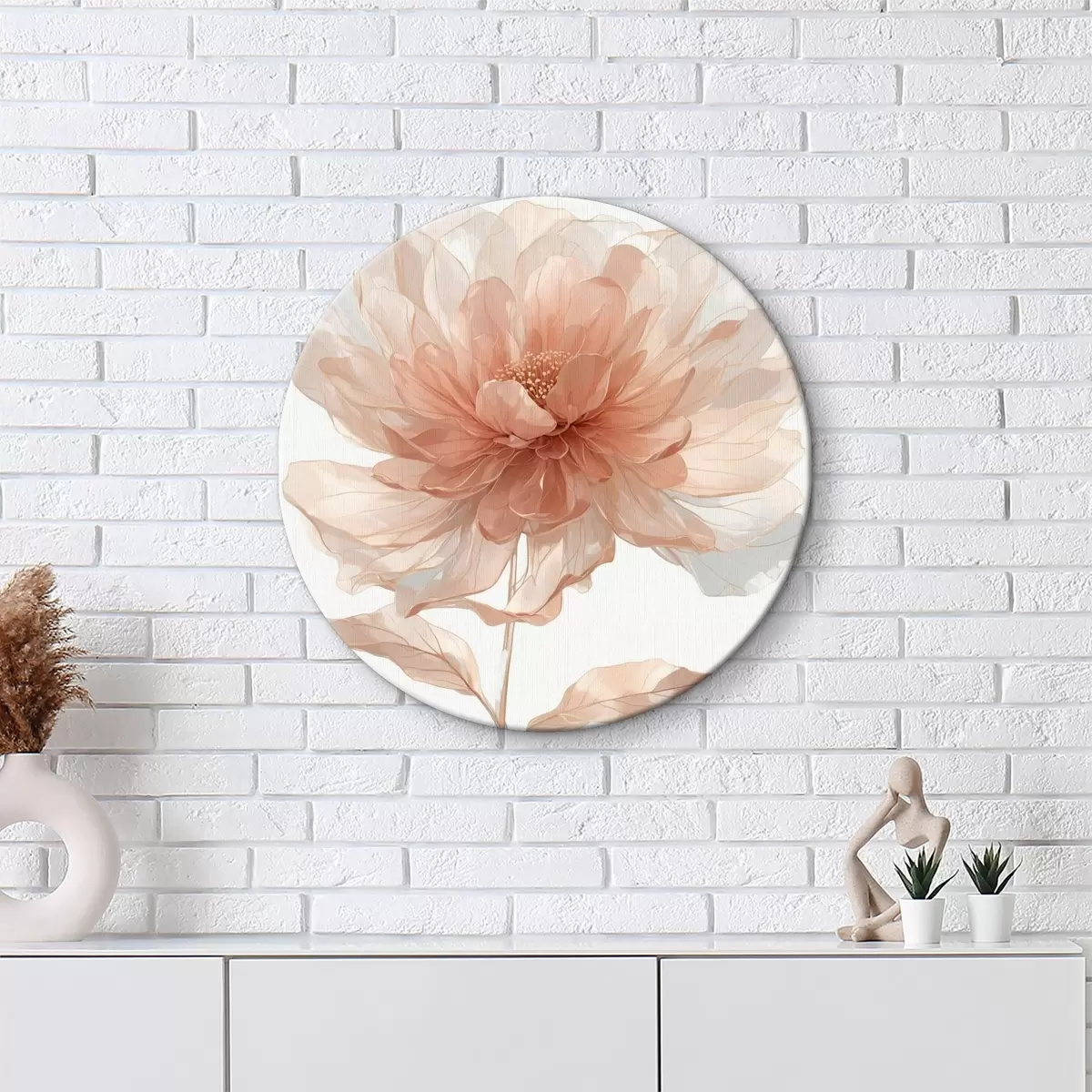 Кругла картина Прозора рожева квітка на білому тлі r40068