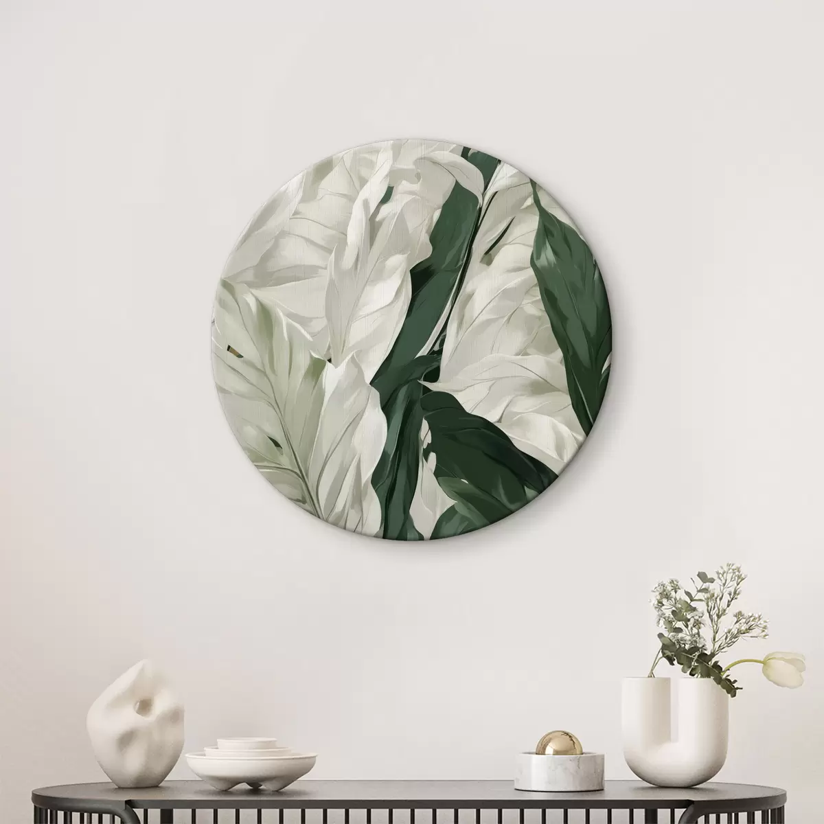 Кругла картина Тропічний біло-зелене листя Nr r40069