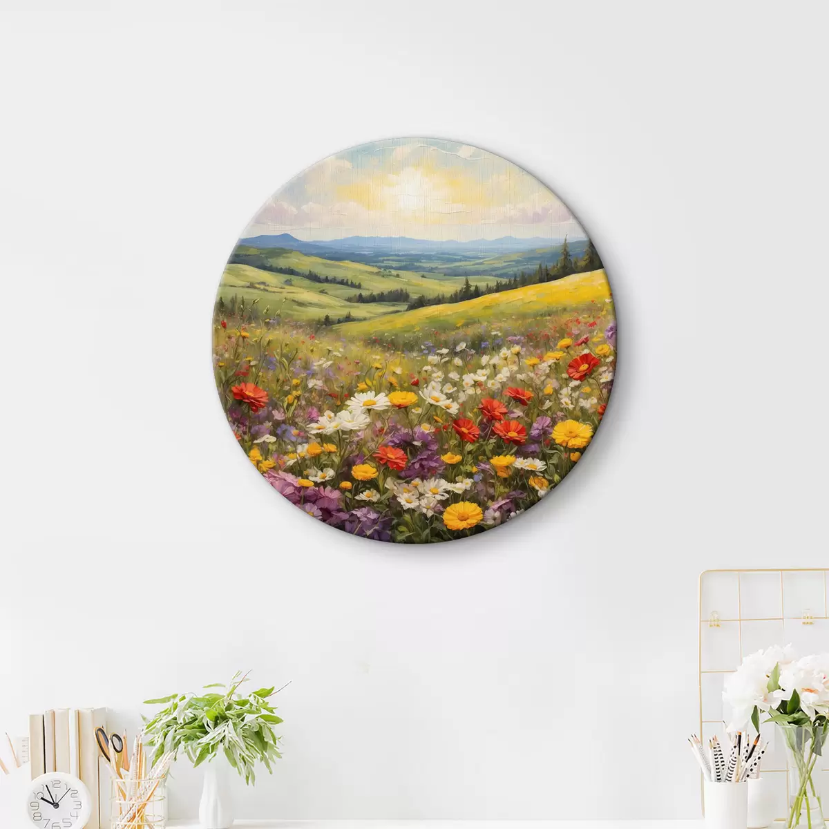 Кругла картина Поле квітів на заході сонця Nr r40073