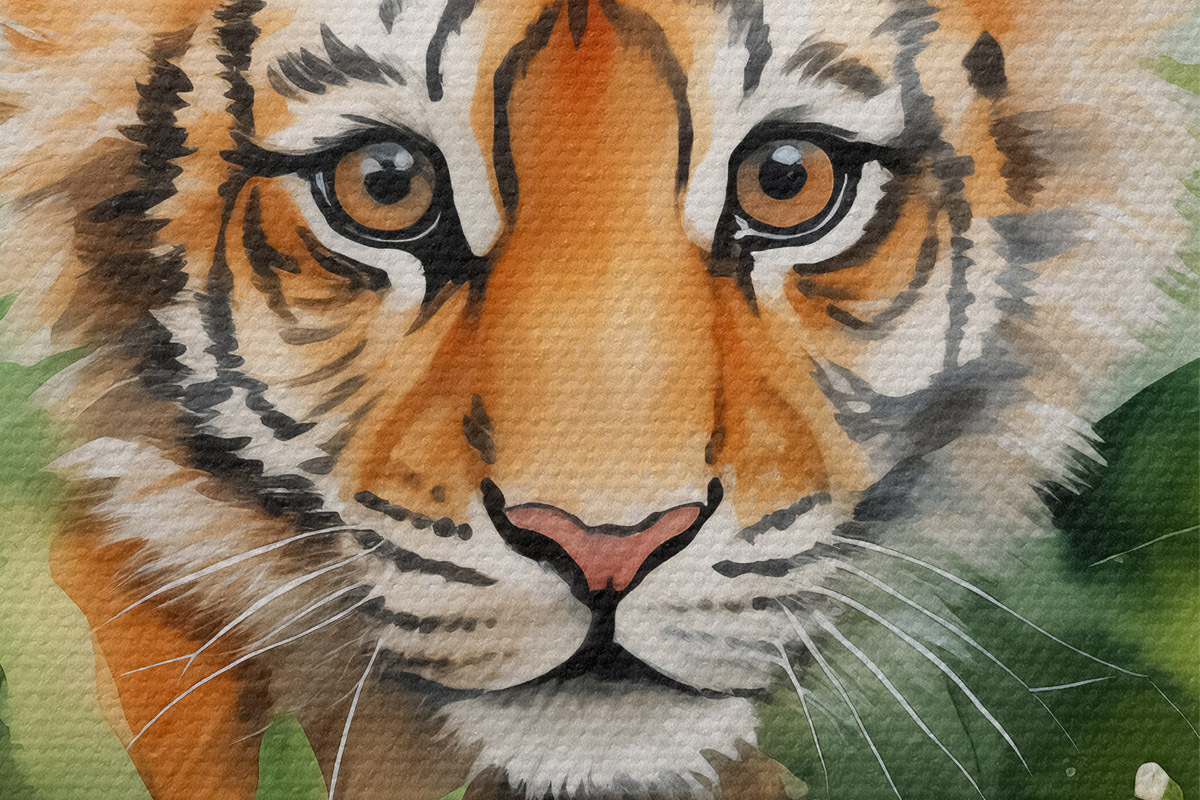 Кругла картина Портрет тигра в тропічних листя аквареллю Nr r40090