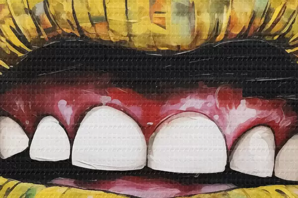 Кругла картина Жовті губи, білі зуби, обличчя в банкнотах, імітація олійного живопису r40098