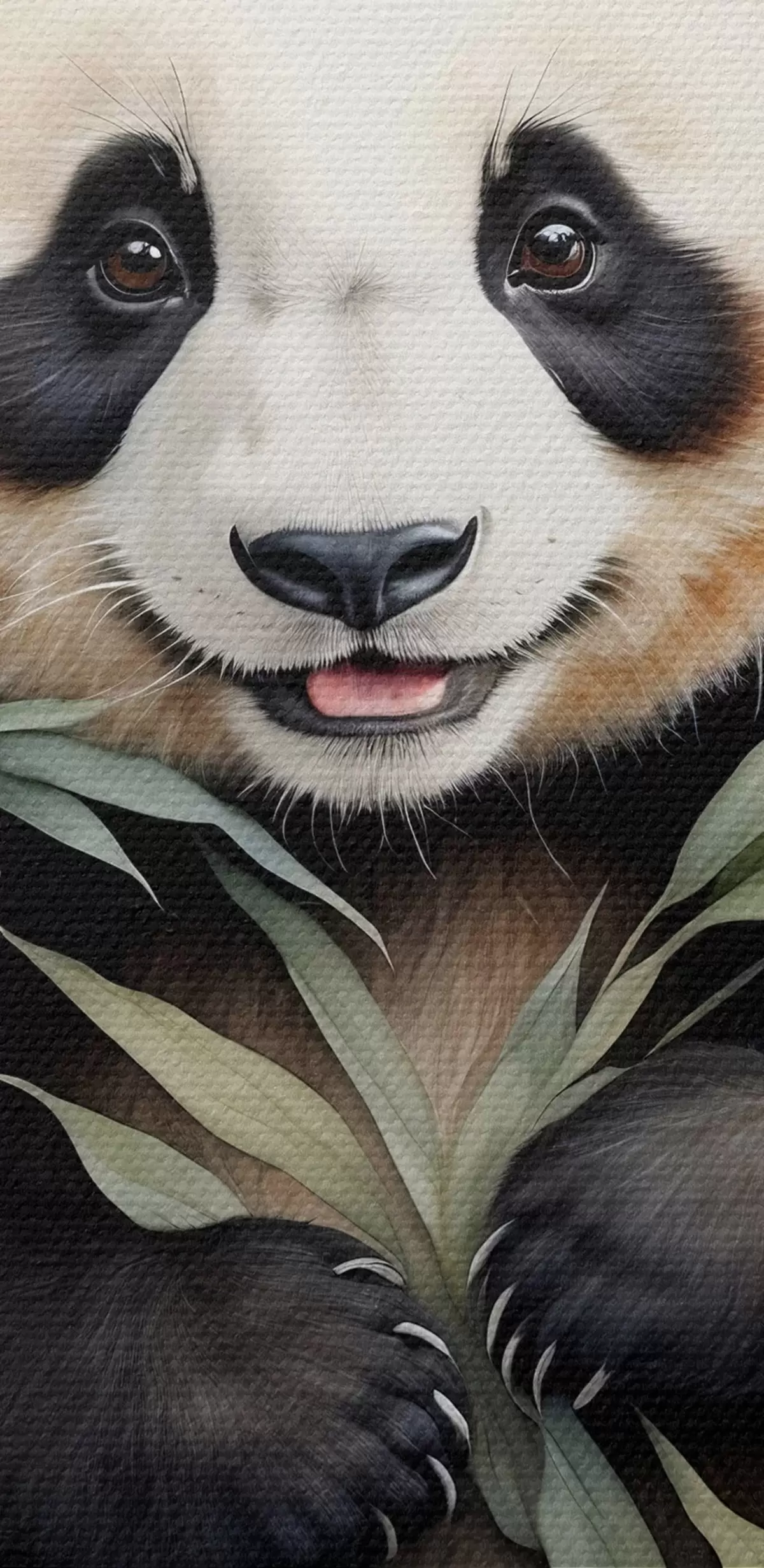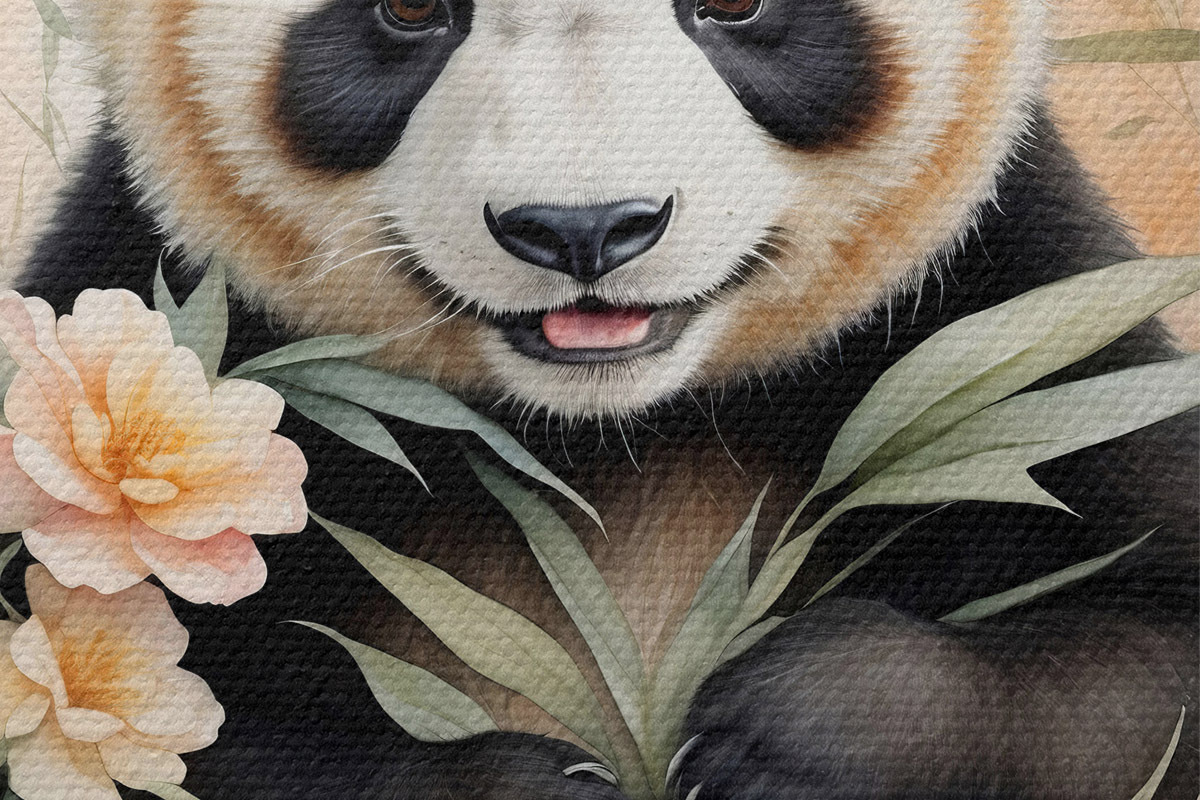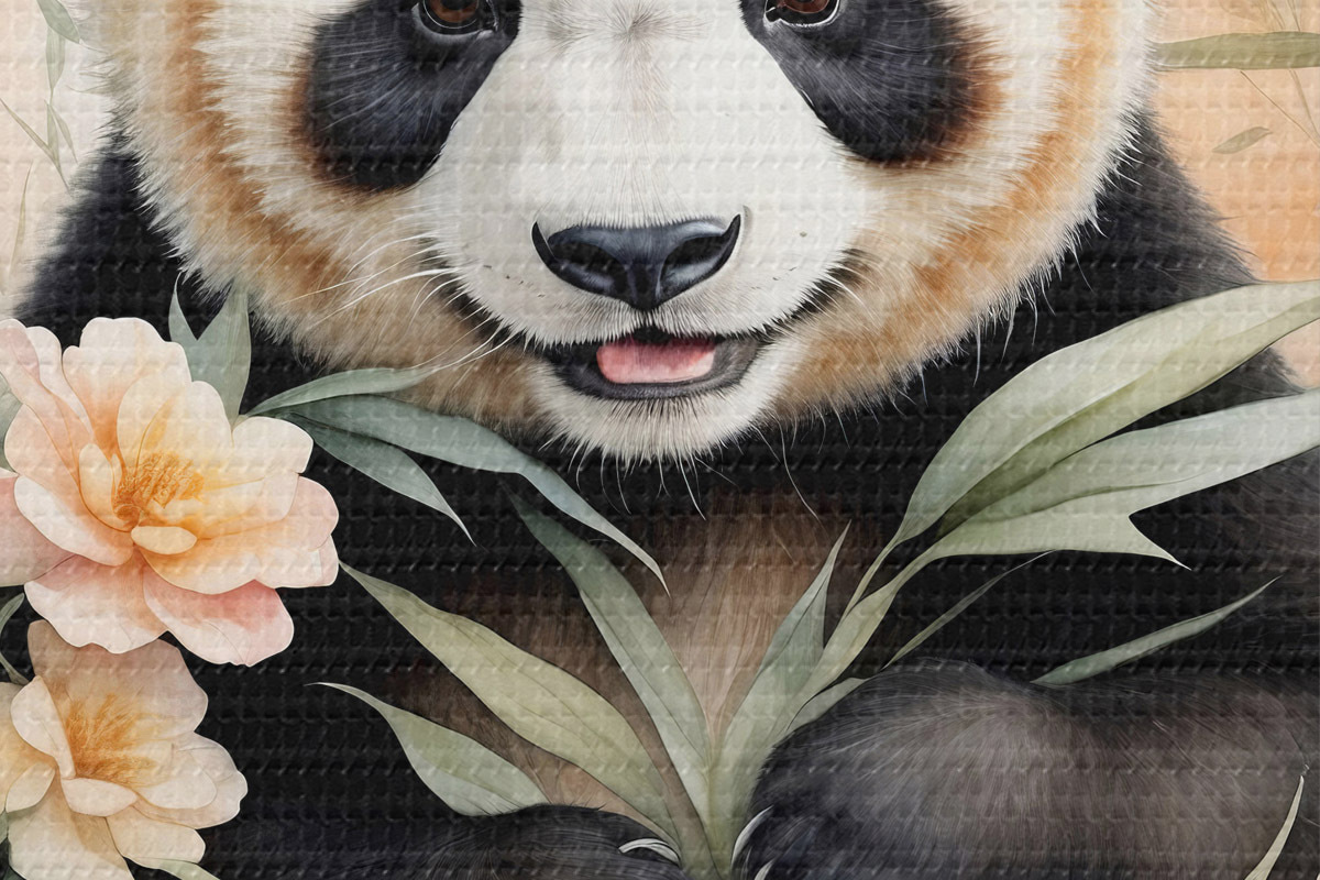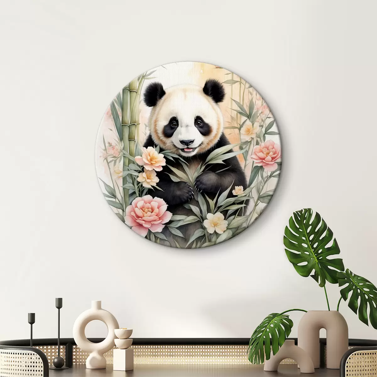 Кругла картина Панда з квітами і бамбуком Nr r40125