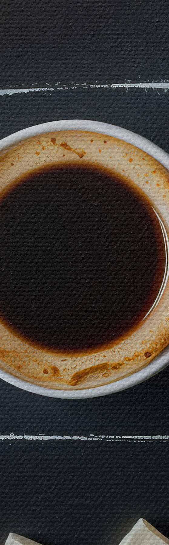Кругла картина Чашка кави з паличками кориці, кубиками цукру та зефіром, розташованими в хрестики-нулики r40163