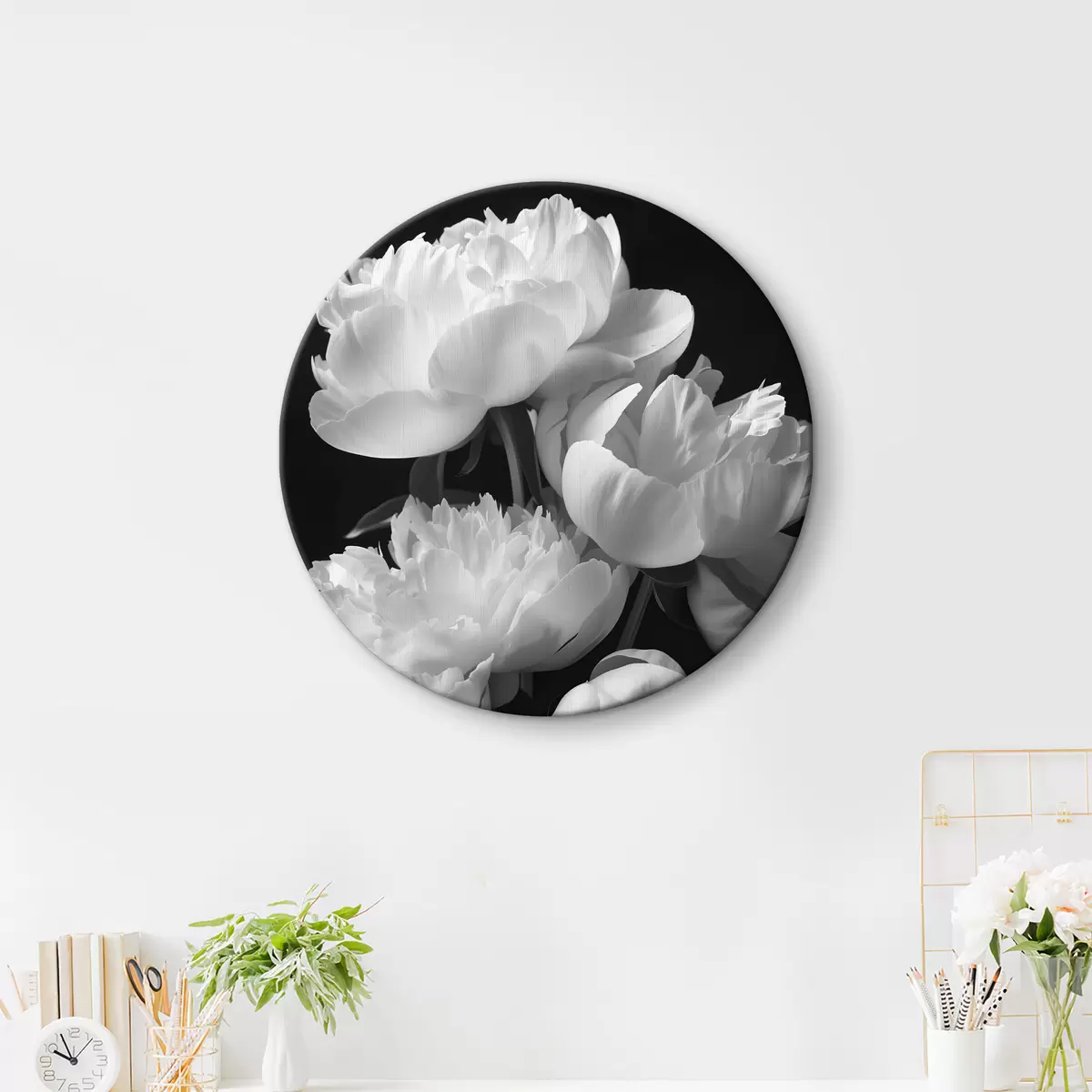Кругла картина Білі півонії на чорному тлі Nr r40208