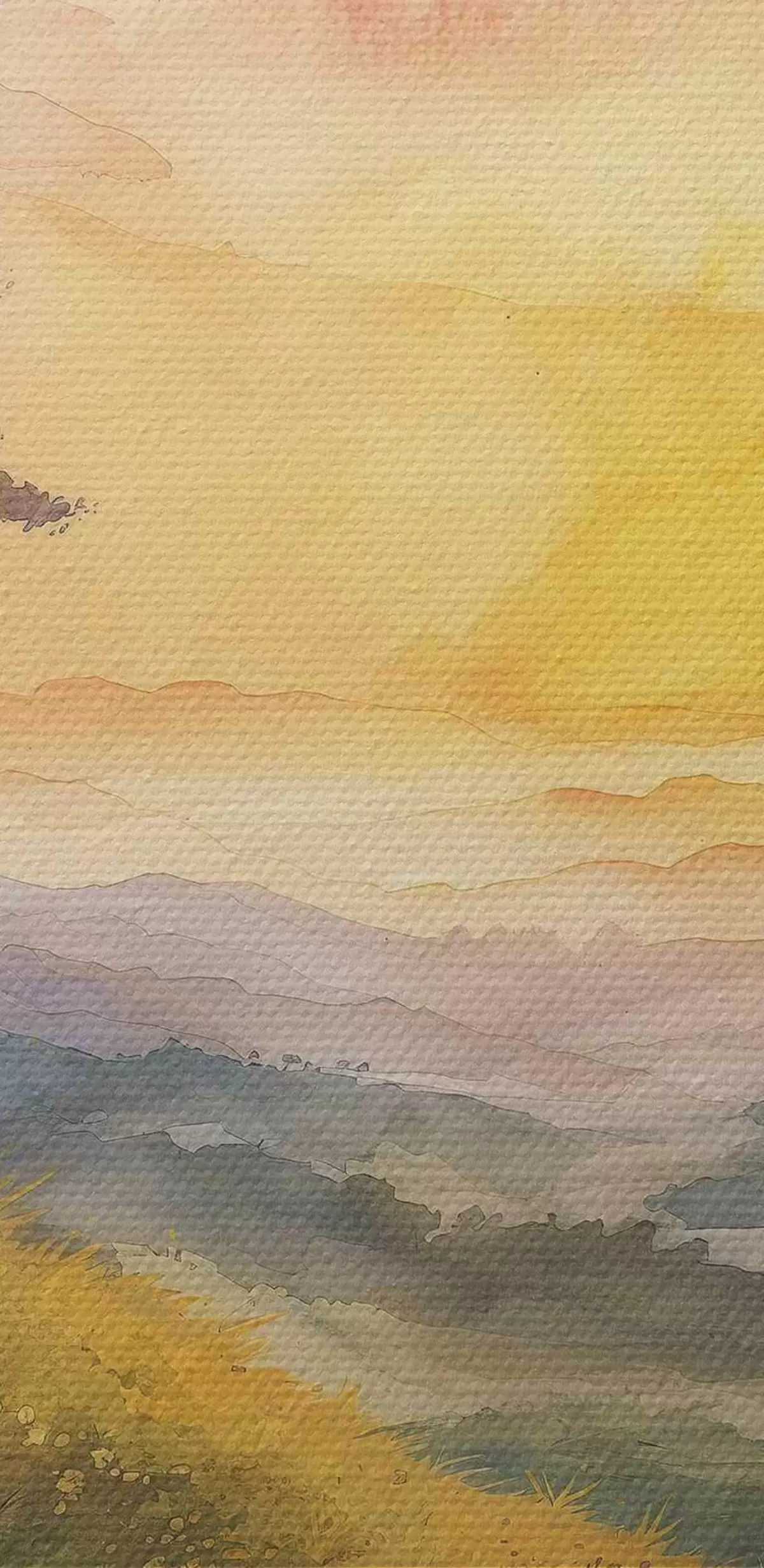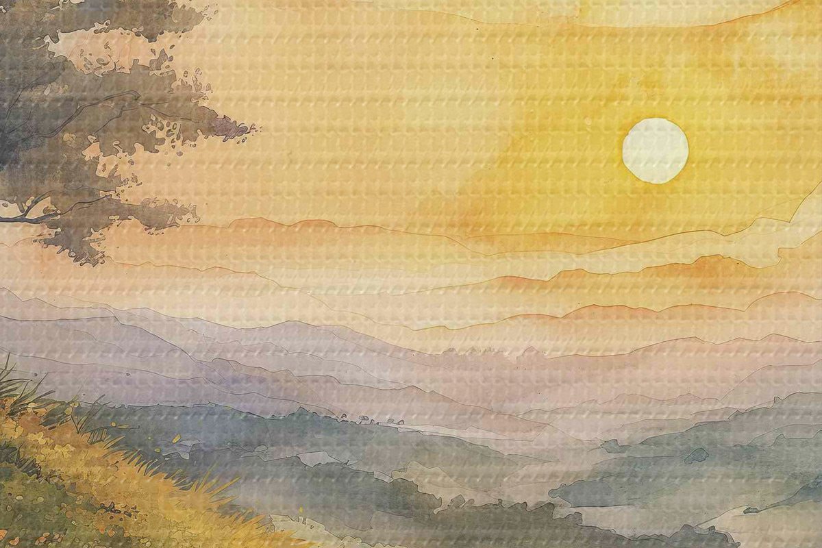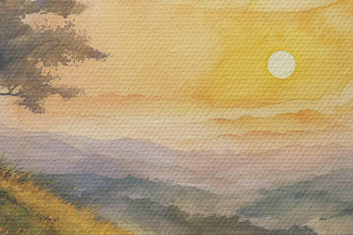 Кругла картина Луг з пагорбами і деревами, квіти, акварель Nr r40303