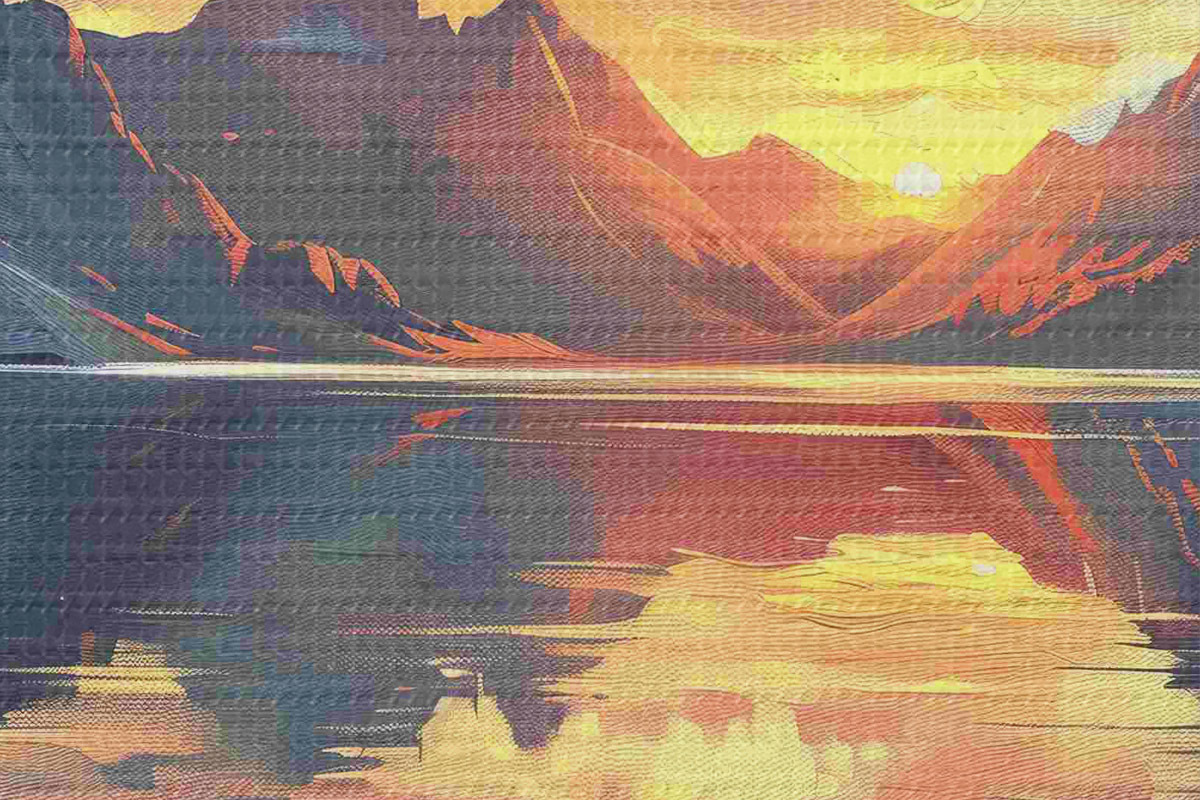 Кругла картина Захід сонця в горах, річка, природні пейзажі, акрилові фарби r40306