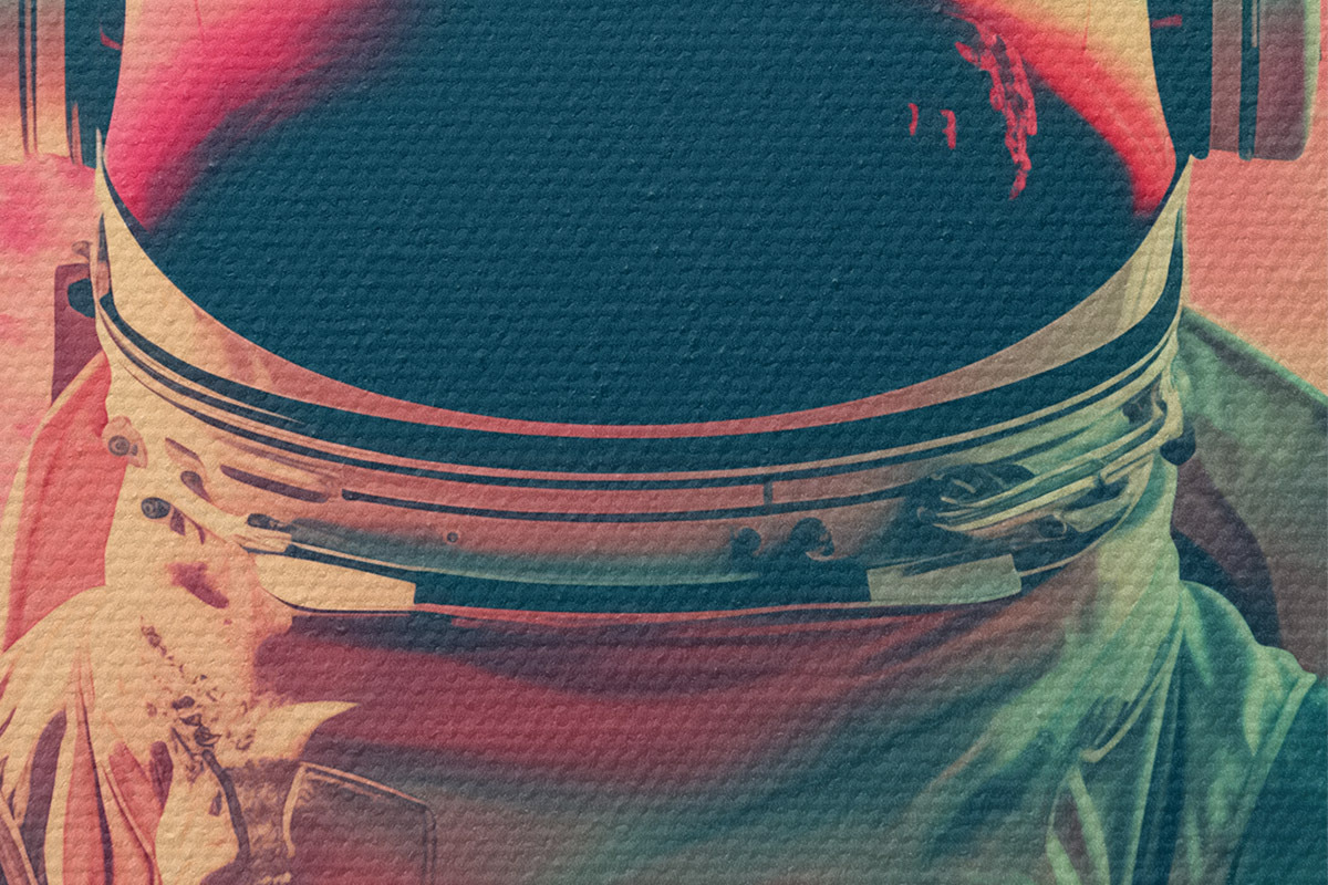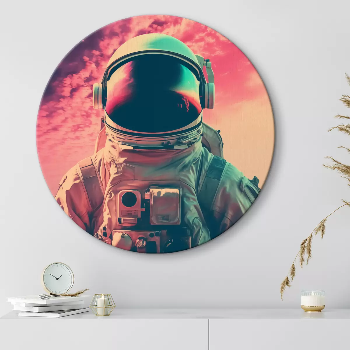 Кругла картина Астронавт у скафандрі на тлі рожевого неба Nr r40312
