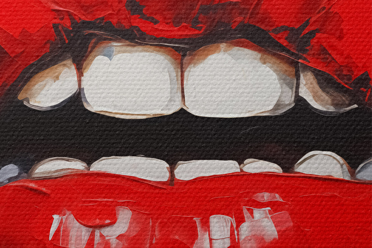 Кругла картина Абстрактний малюнок червоні губи білі зуби r40319