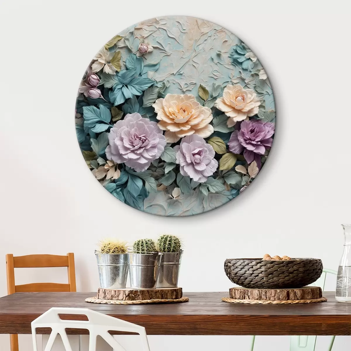 Кругла картина Квіти і листя на абстрактним фоном Nr r40332