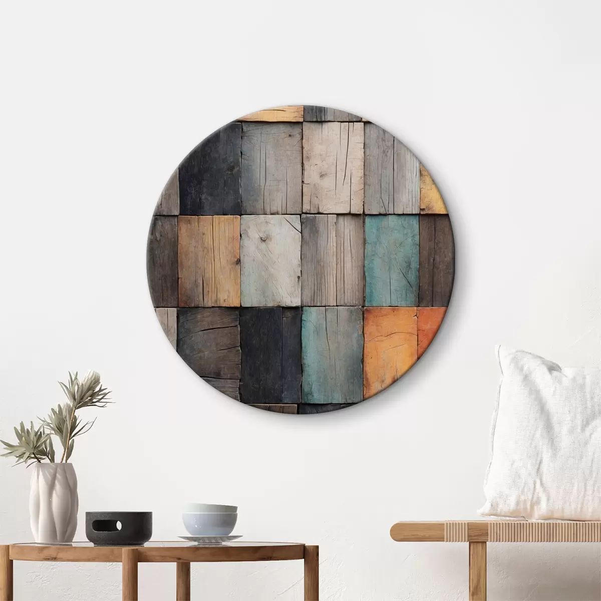 Кругла картина Стіна старої дерев'яної плитки r40337