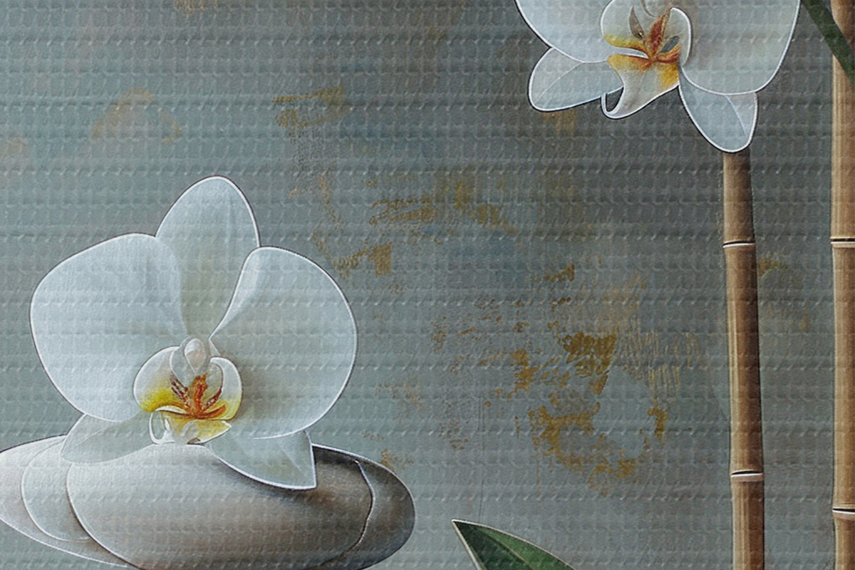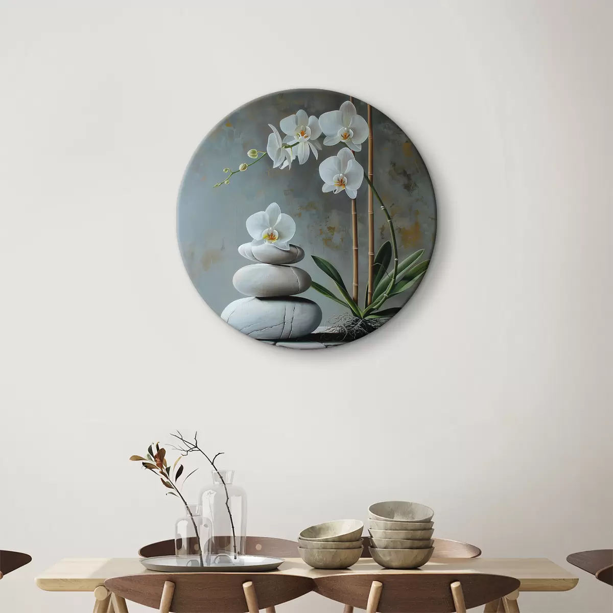 Кругла картина Орхідея на сірій стіні Nr r40368