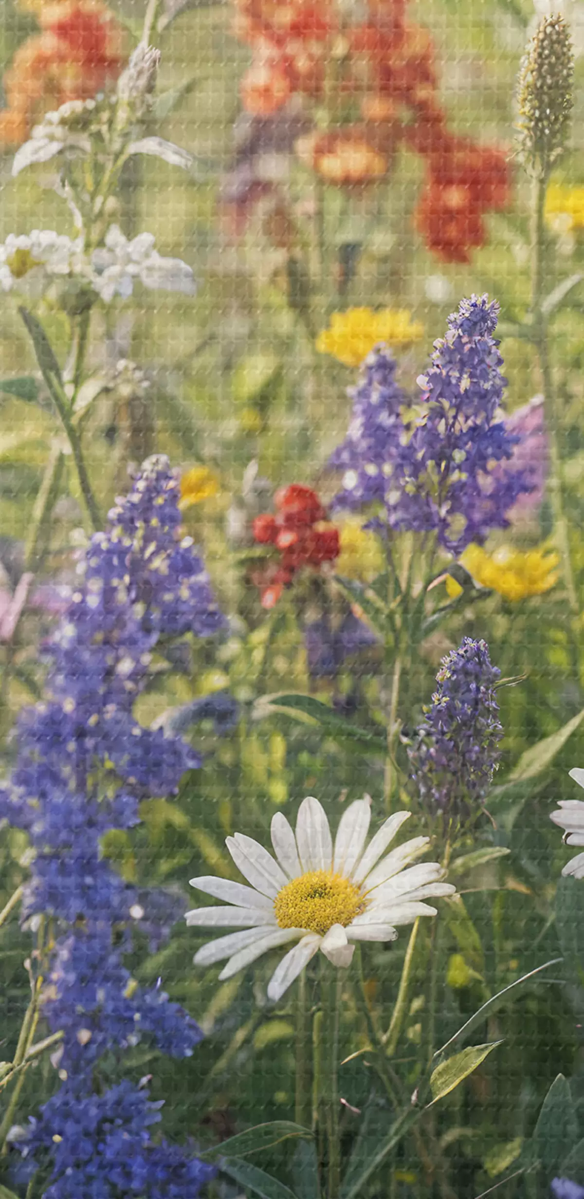 Кругла картина Барвистий луг з польовими квітами з різними квітами, включаючи ромашки, лаванду та червоні квіти Nr r40390