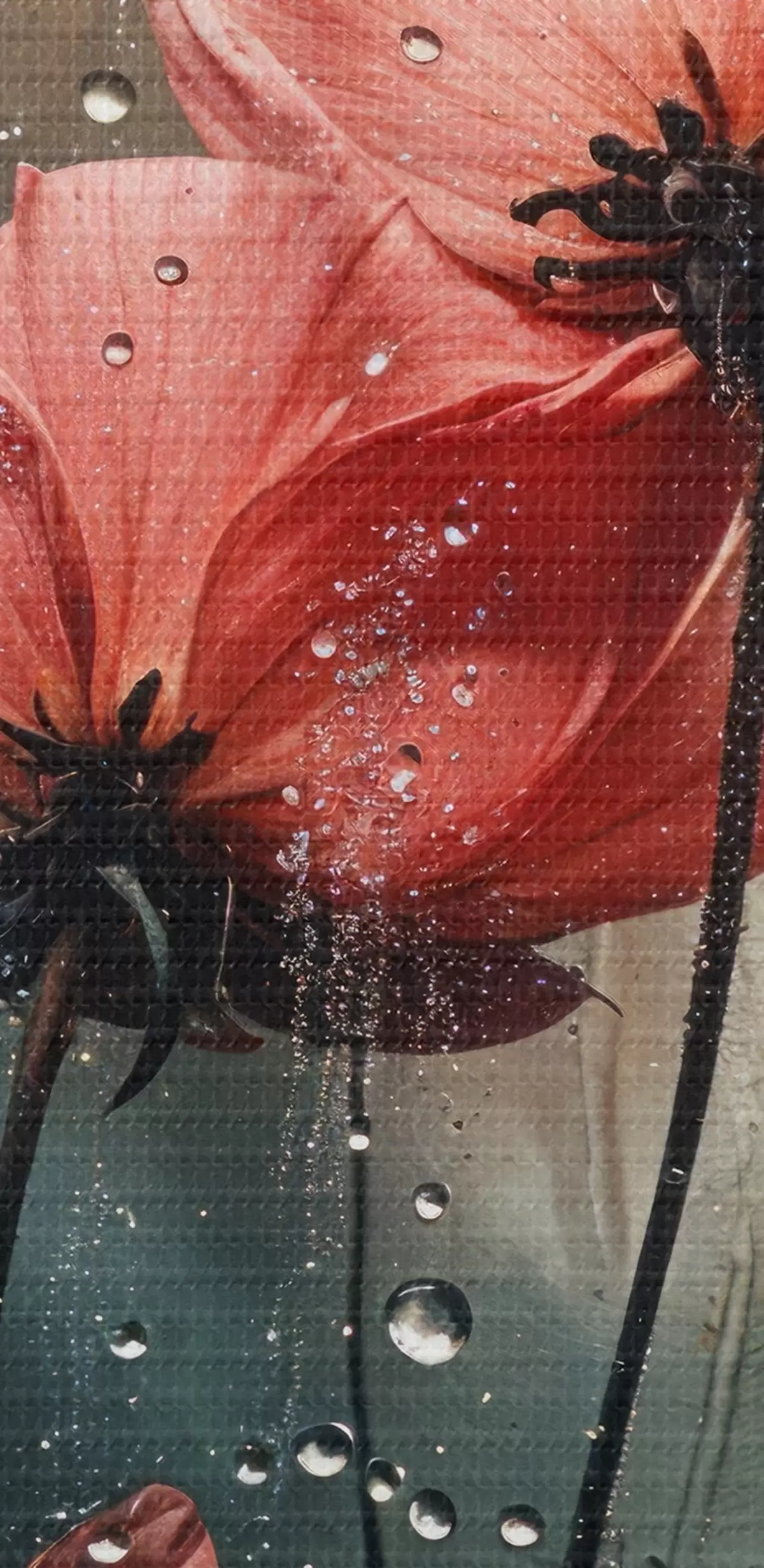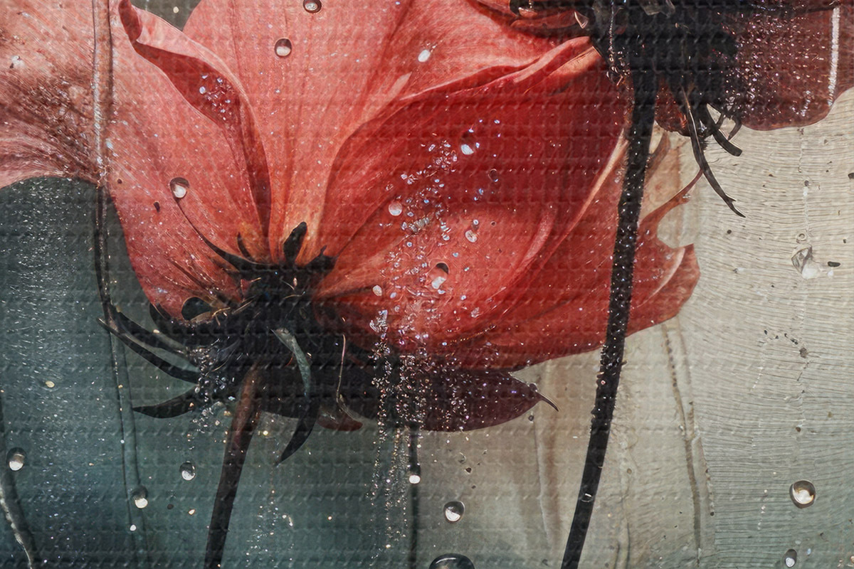 Кругла картина Червоні квіти з краплями води на розмитому фоні r40412