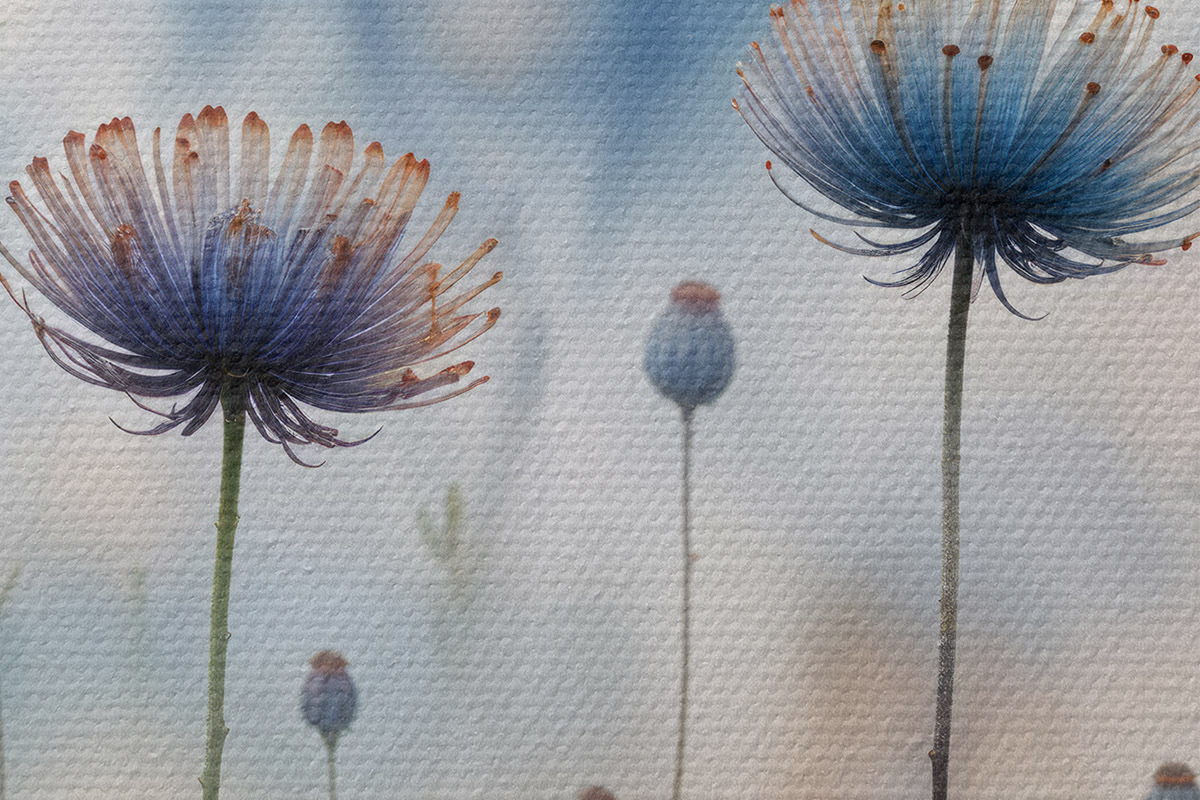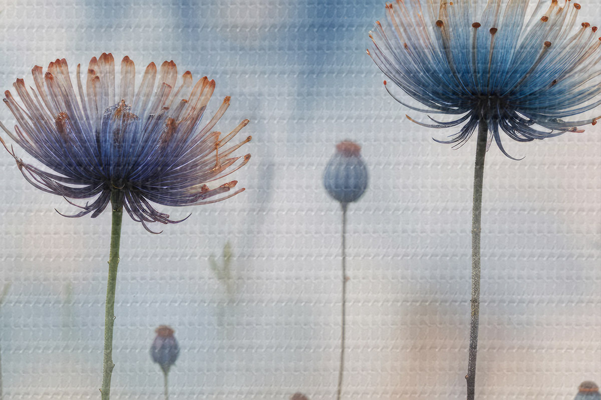Кругла картина Високі фіолетові квіти, схожі на кульбаби, з розмитим фоном створюють безтурботну та мрійливу атмосферу r40414