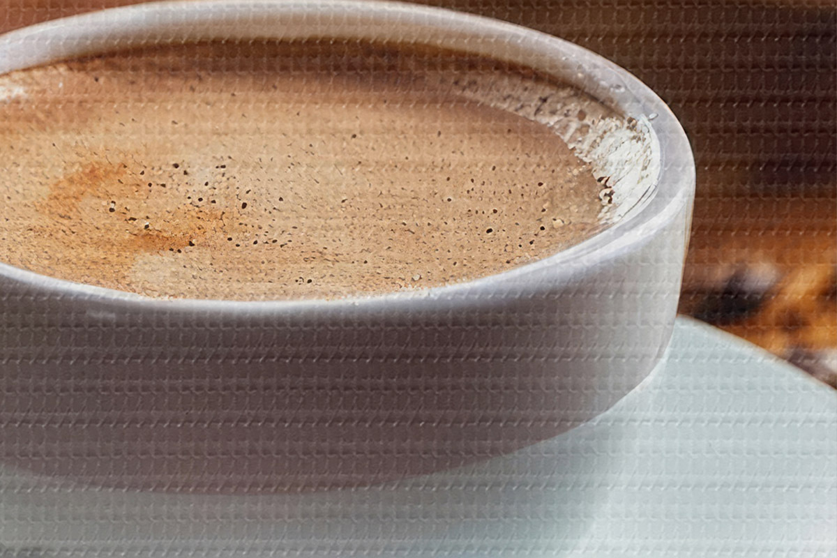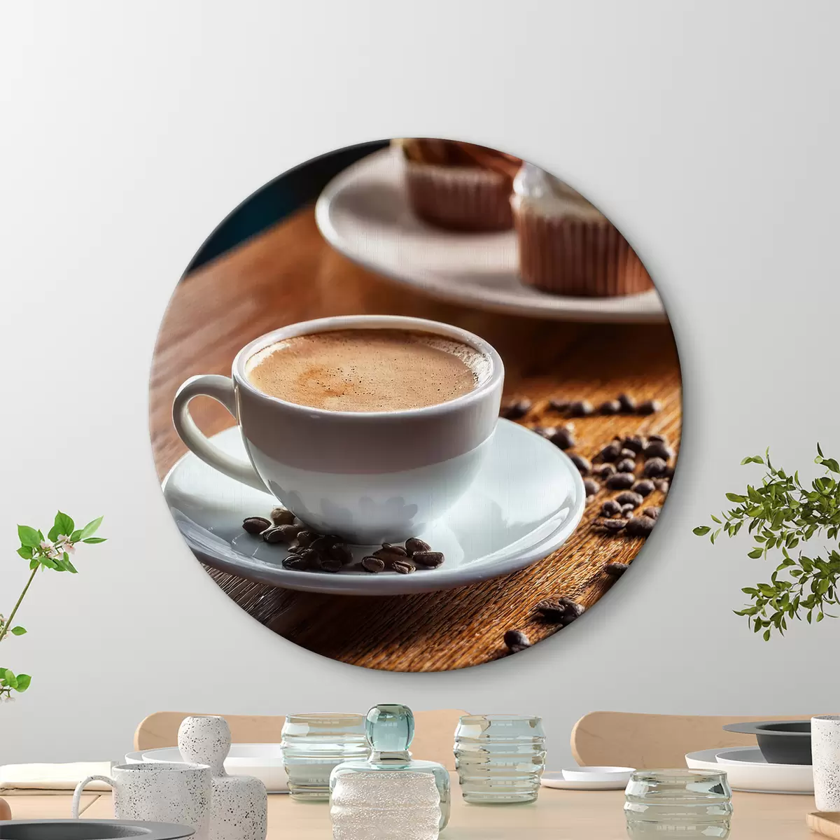 Кругла картина чашка кави, кавові зерна, тістечка, Натюрморт Nr r40417