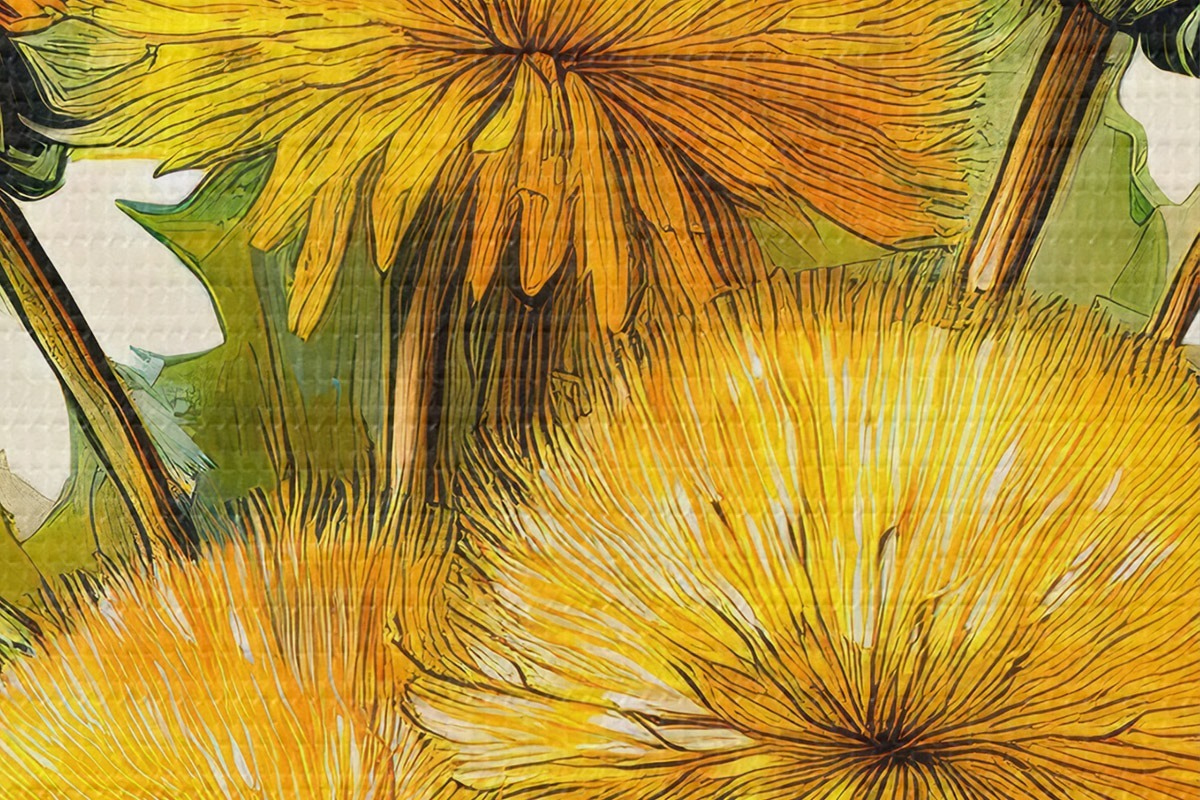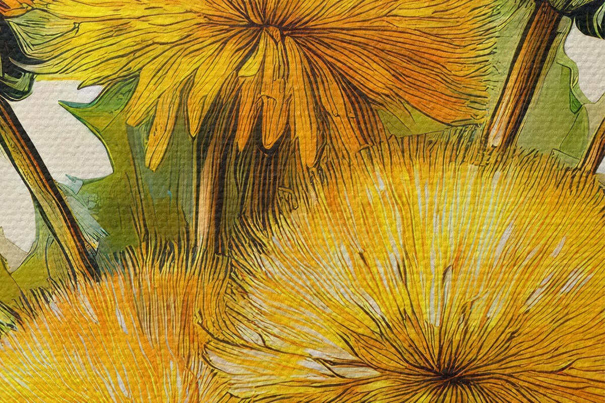 Кругла картина кульбаби, букет кульбаб у вазі, жовті кульбаби Nr r40418