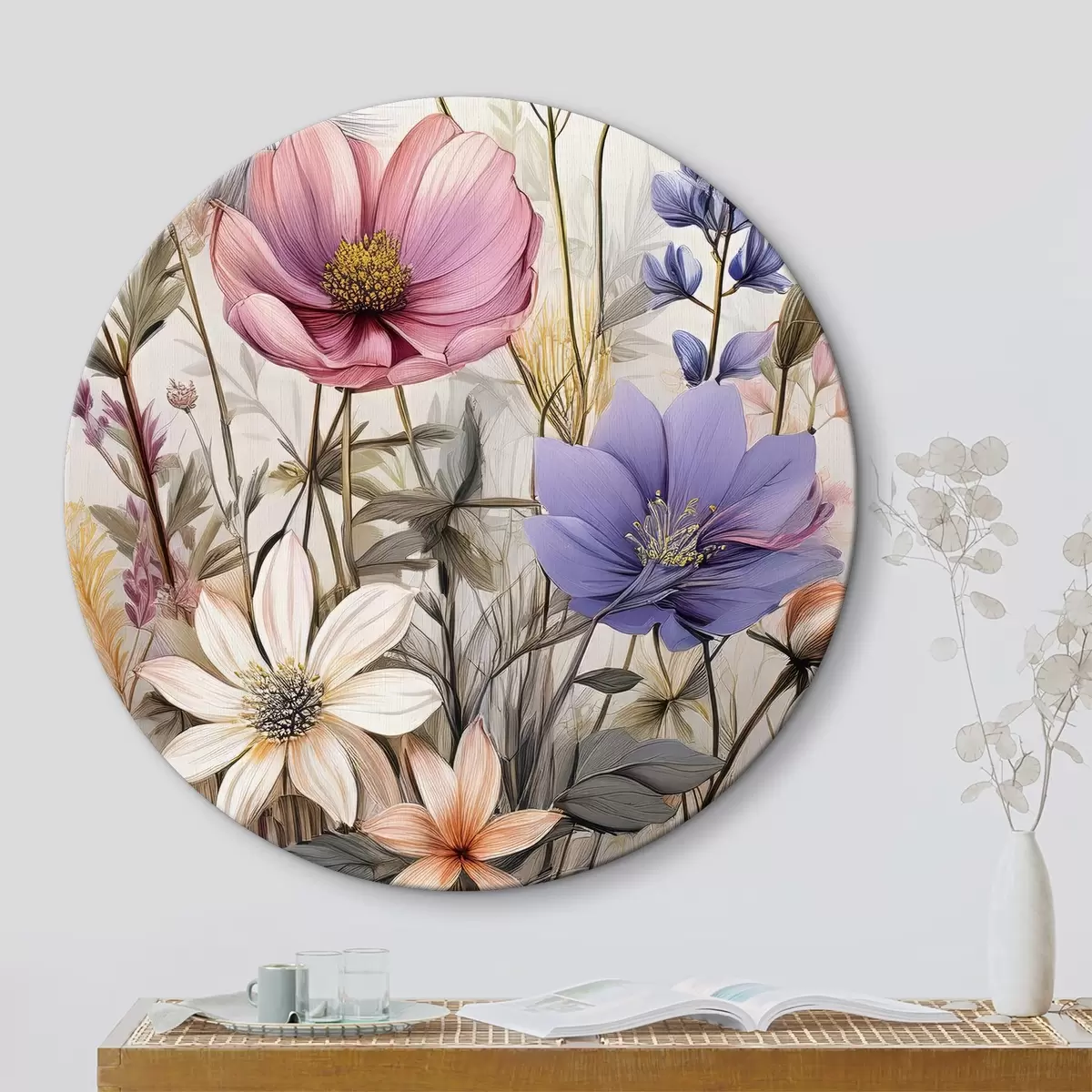 Кругла картина польові квіти, квіткова композиція Nr r40423