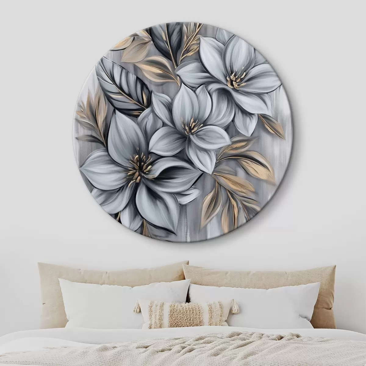Кругла картина Квіти у відтінках сірого Nr r40454