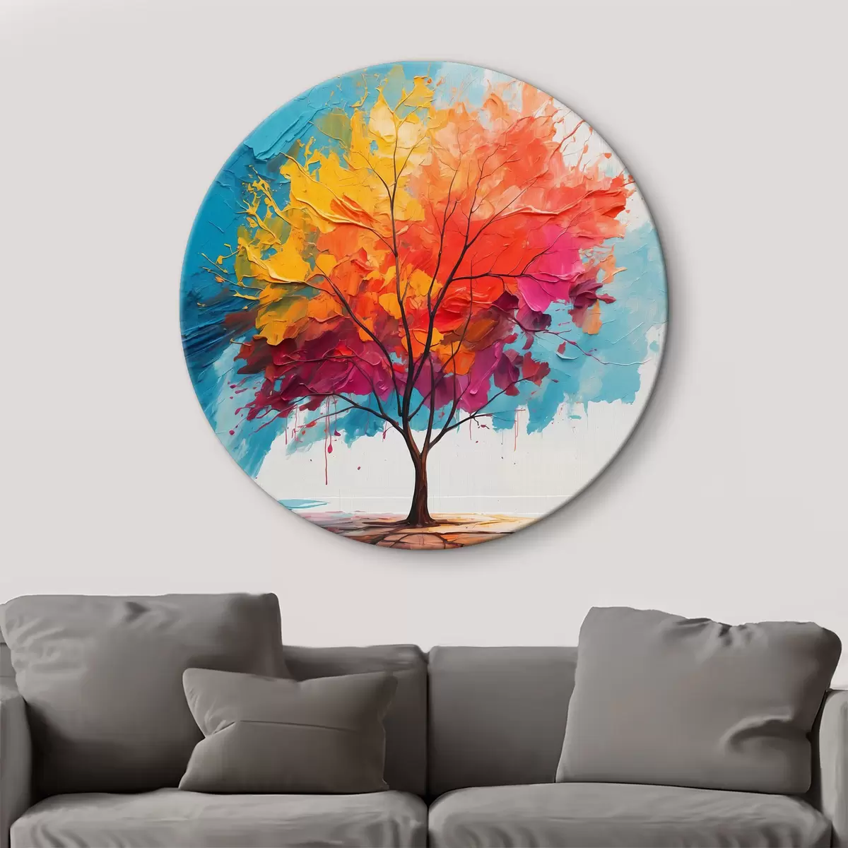 Кругла картина Абстрактне різнокольорове дерево на озері Nr r40455