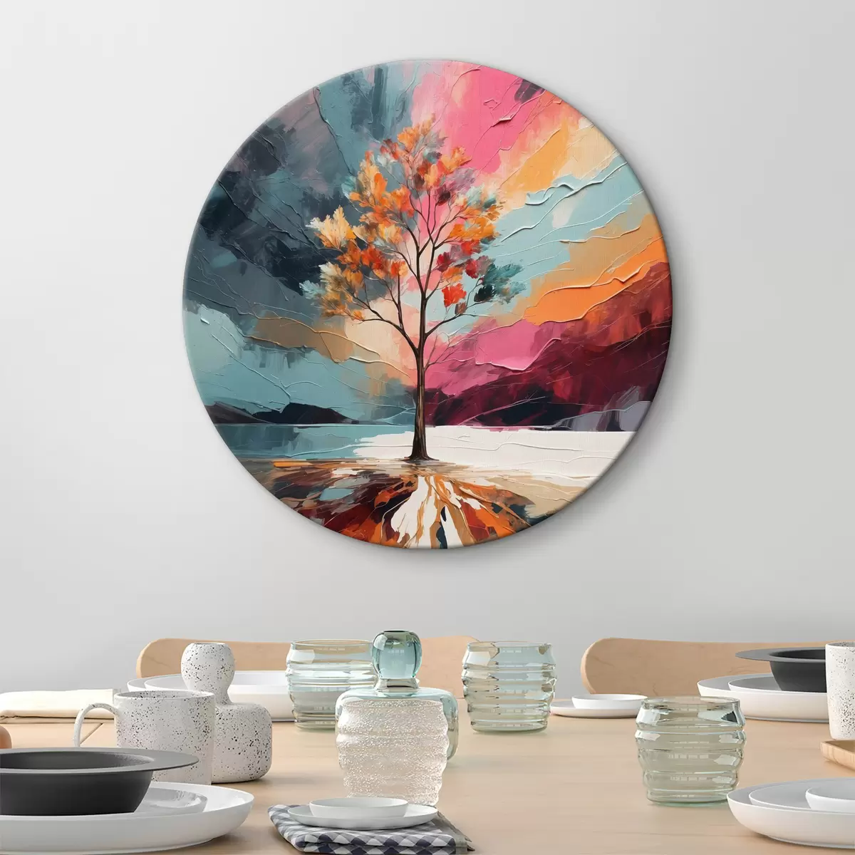 Кругла картина Абстрактна картина акрилом з деревом Nr r40461