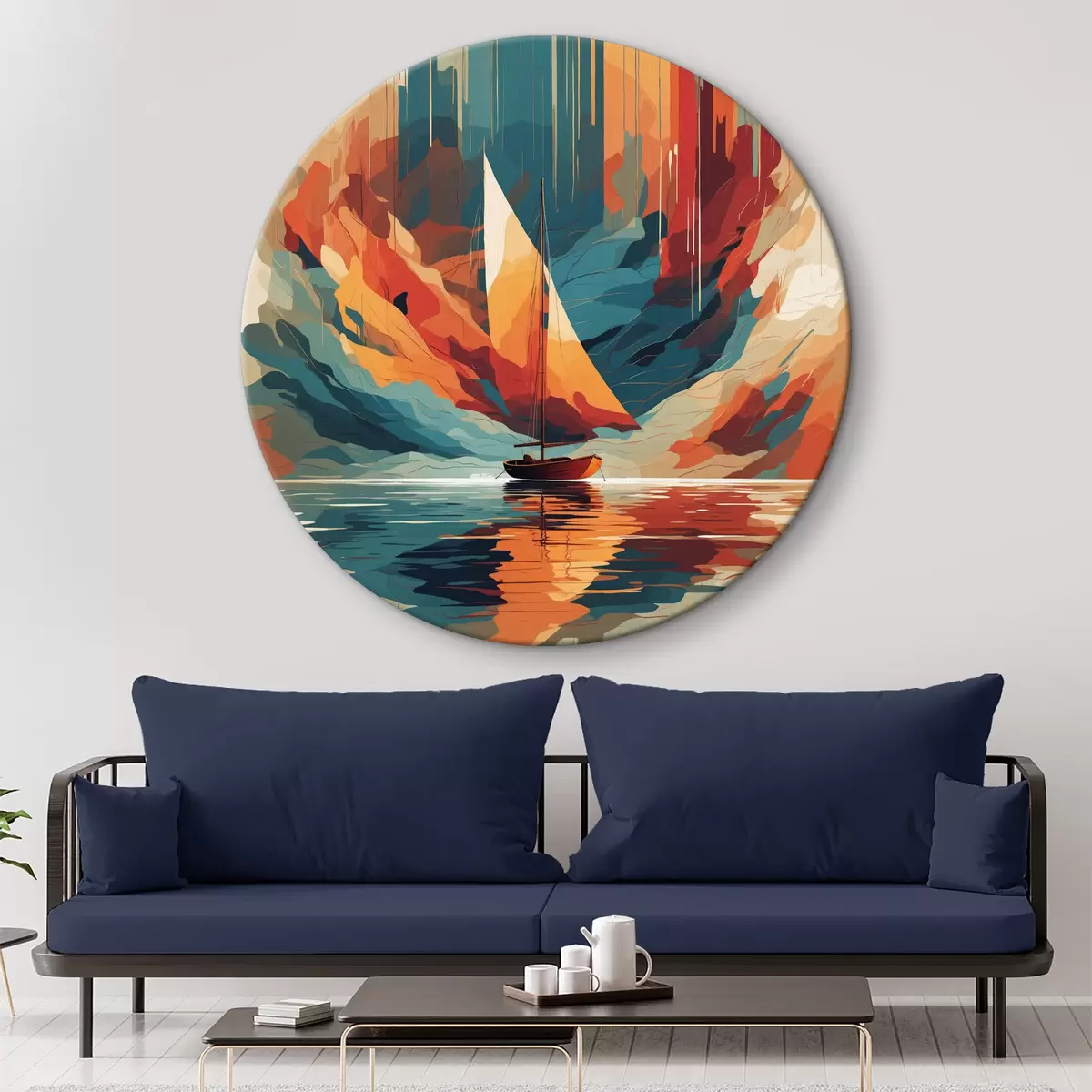 Кругла картина Човен на озері у векторній графіці Nr r40462