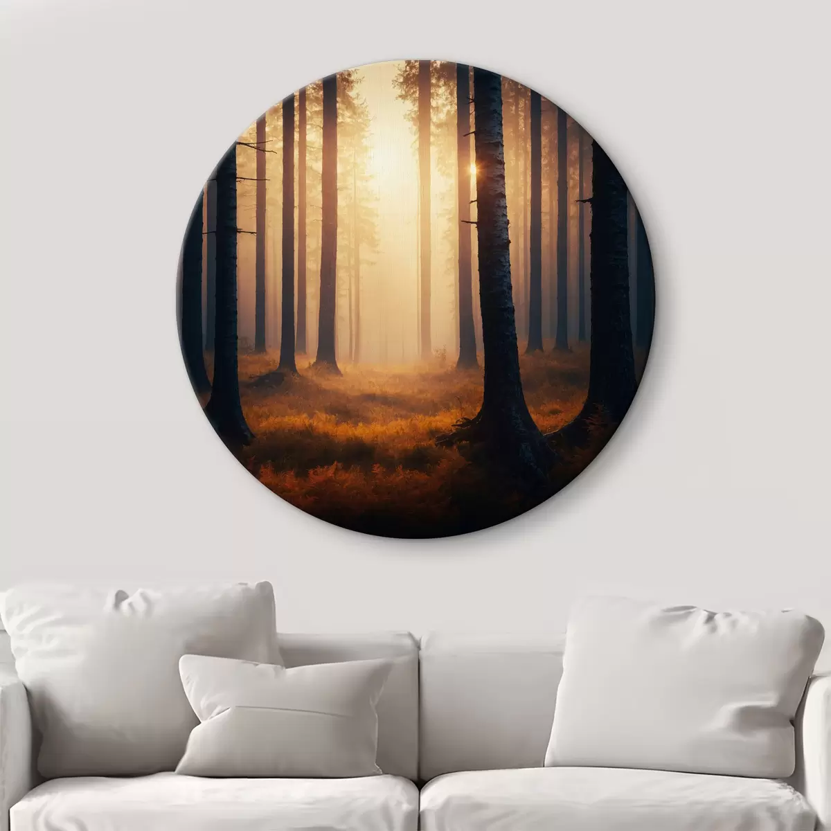 Кругла картина Захід сонця в лісі Nr r40473