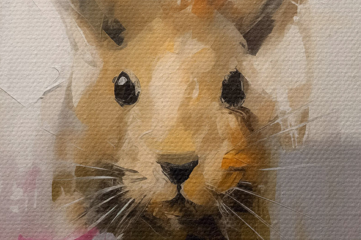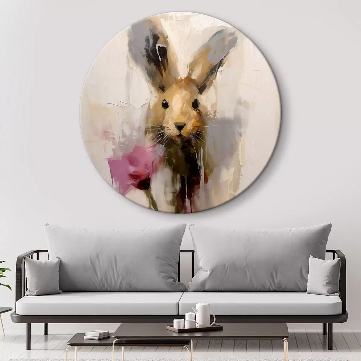 Кругла картина Абстрактний заєць і квітка, сірий, рожевий, коричневий Nr r40516