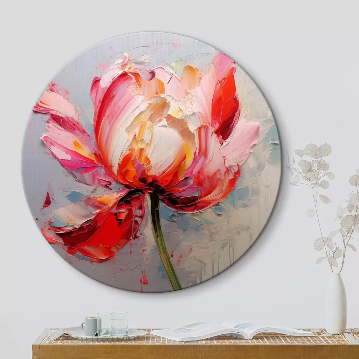 Кругла картина Квітучий тюльпан, червоний, рожевий, сірий колір Nr r40519