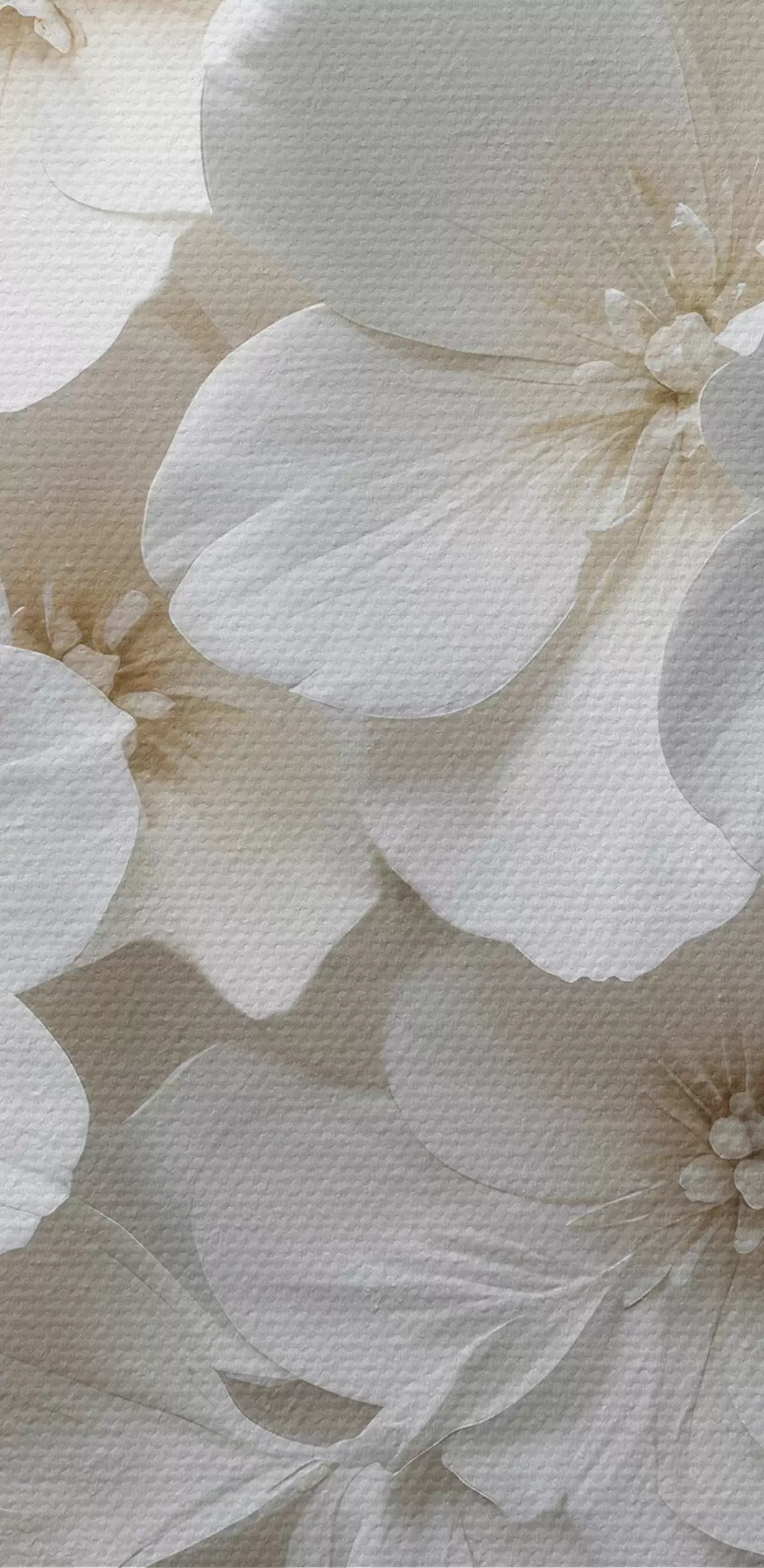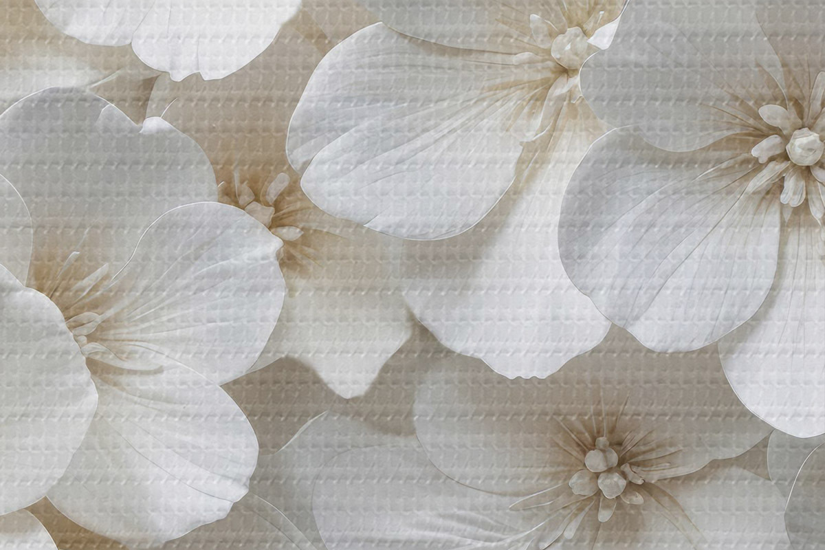 Кругла картина Білі квіти з ніжними пелюстками, розташованими в красивому квітковому візерунку на світлому тлі r40548