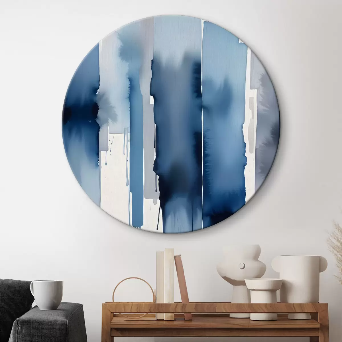 Кругла картина Високі, абстрактні акварельні мазки в туманній, синюватій композиції Nr r40564