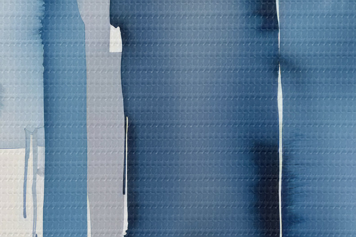 Кругла картина Високі, абстрактні акварельні мазки в туманній, синюватій композиції r40564
