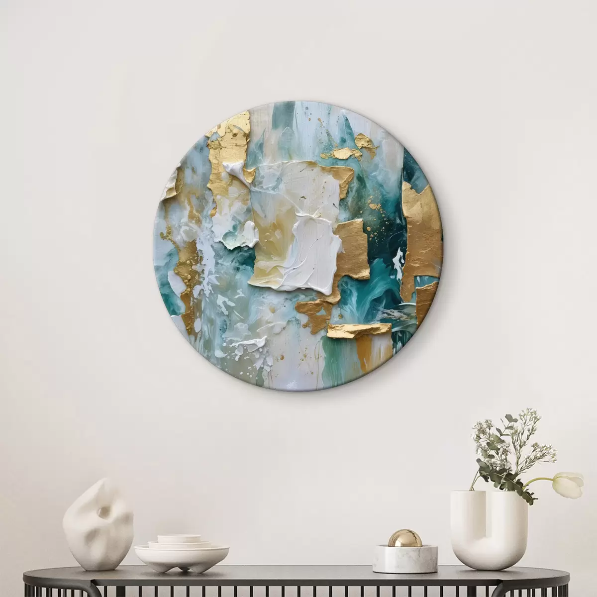 Кругла картина Перешаровування фарби шарами білого, синього та жовтого створює абстрактний, фактурний принт Nr r40577