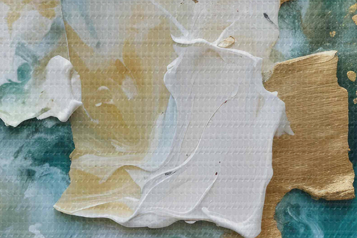Кругла картина Перешаровування фарби шарами білого, синього та жовтого створює абстрактний, фактурний принт r40577