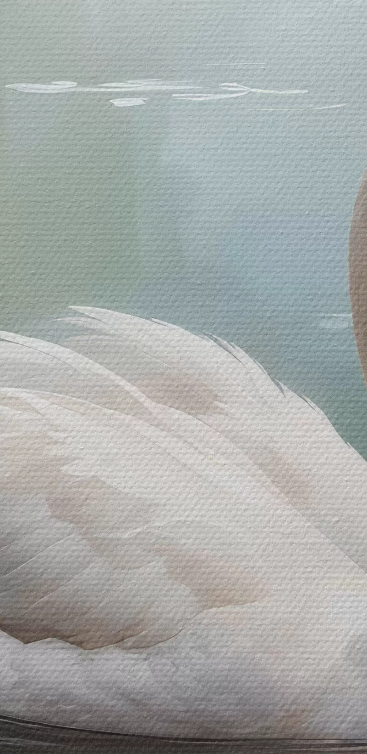 Кругла картина Граціозний білий лебідь плаває в спокійному ставку в оточенні квітучих рожевих вишень Nr r40597