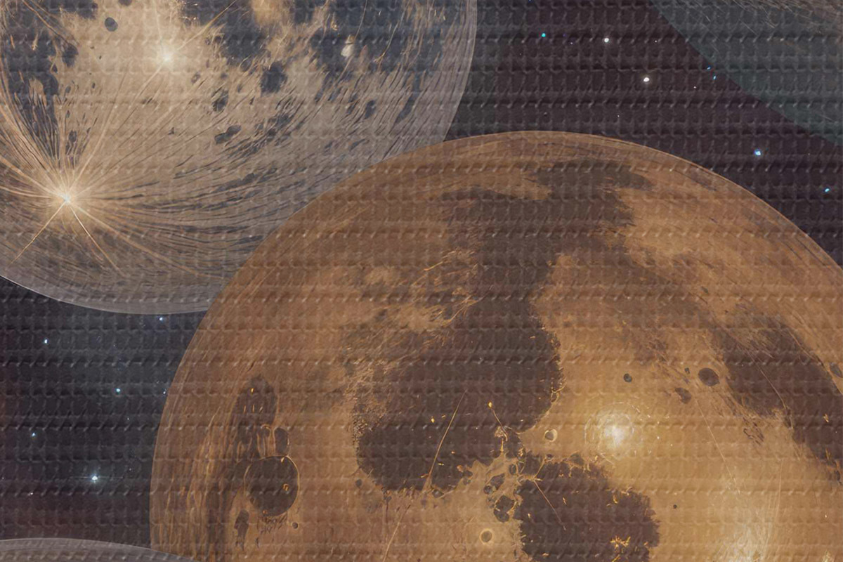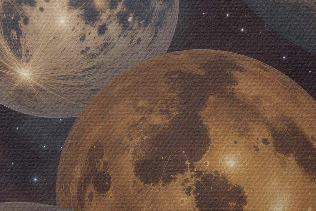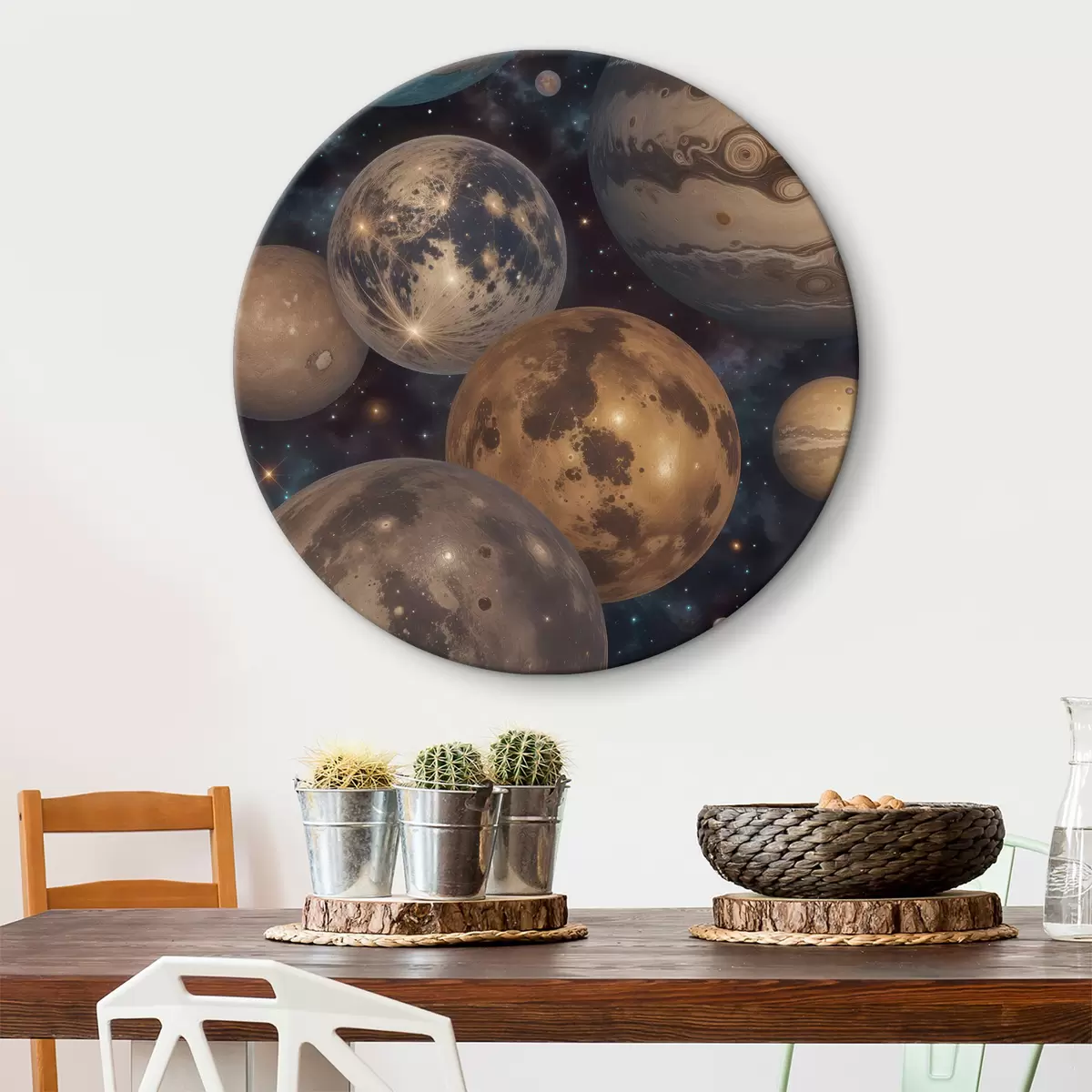 Кругла картина Абстрактний космічний принт із різнокольоровими планетами та місяцями, що пливуть у зоряному нічному небі Nr r40607