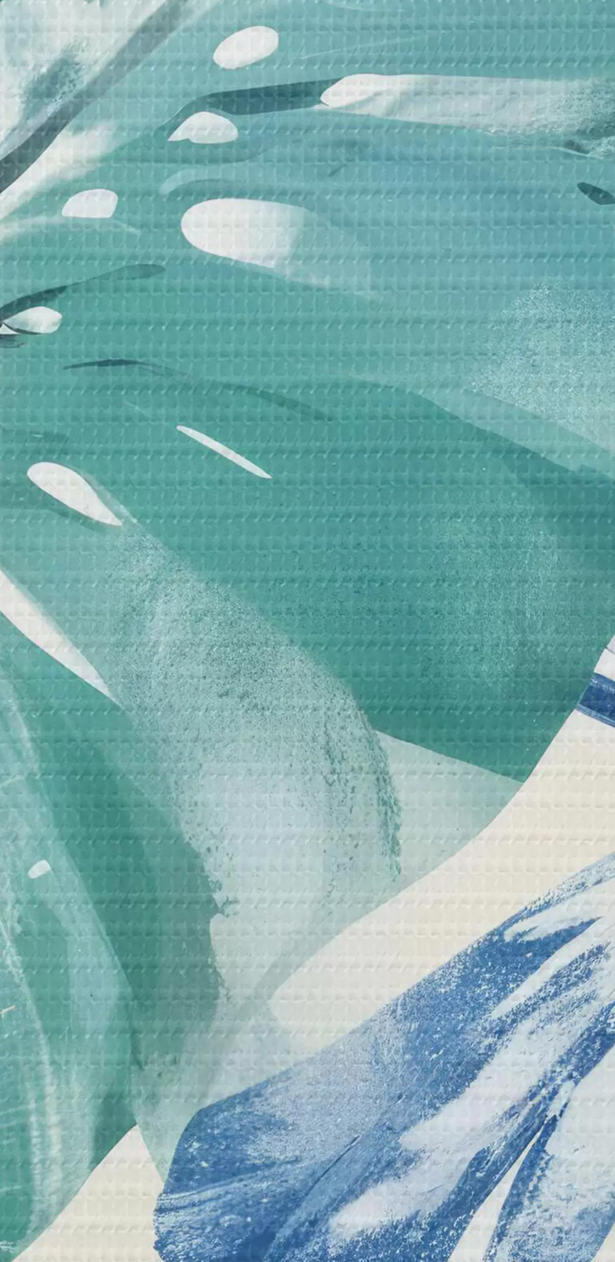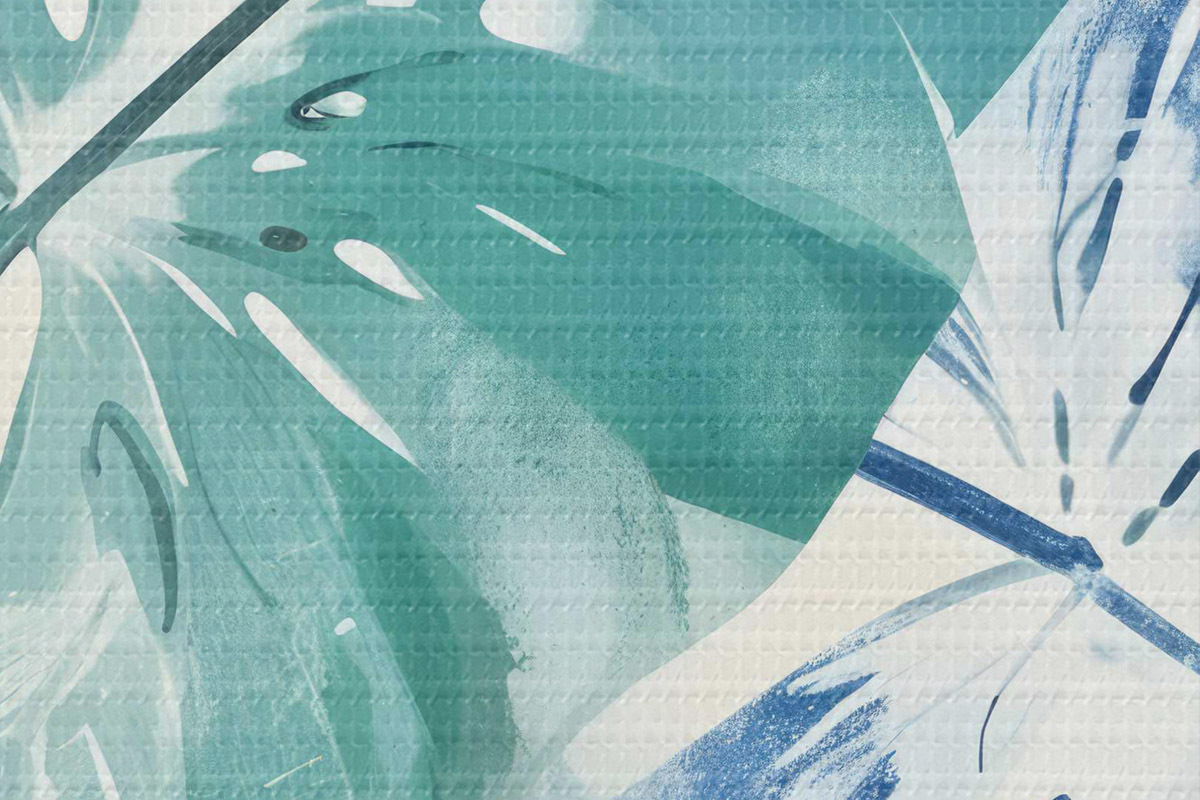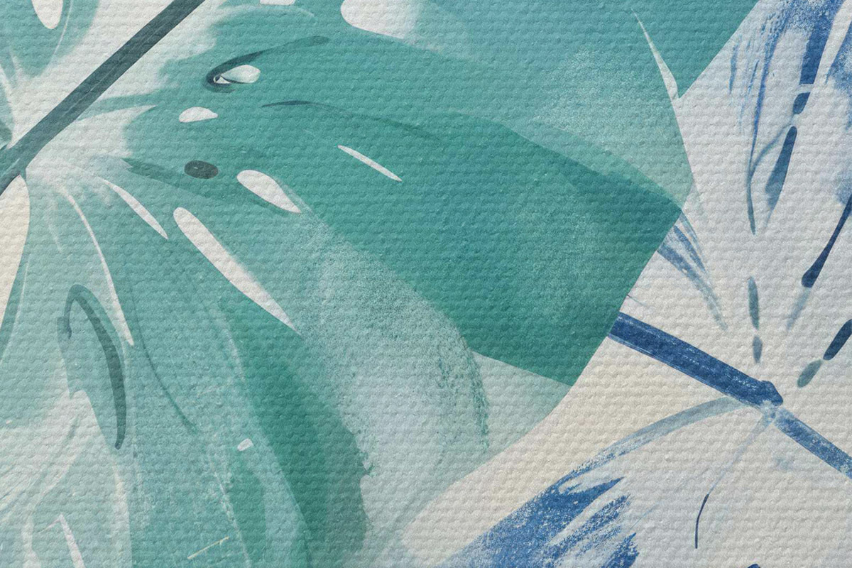 Кругла картина Принт з великим тропічним листям у відтінках синього та зеленого на світлому тлі Nr r40608